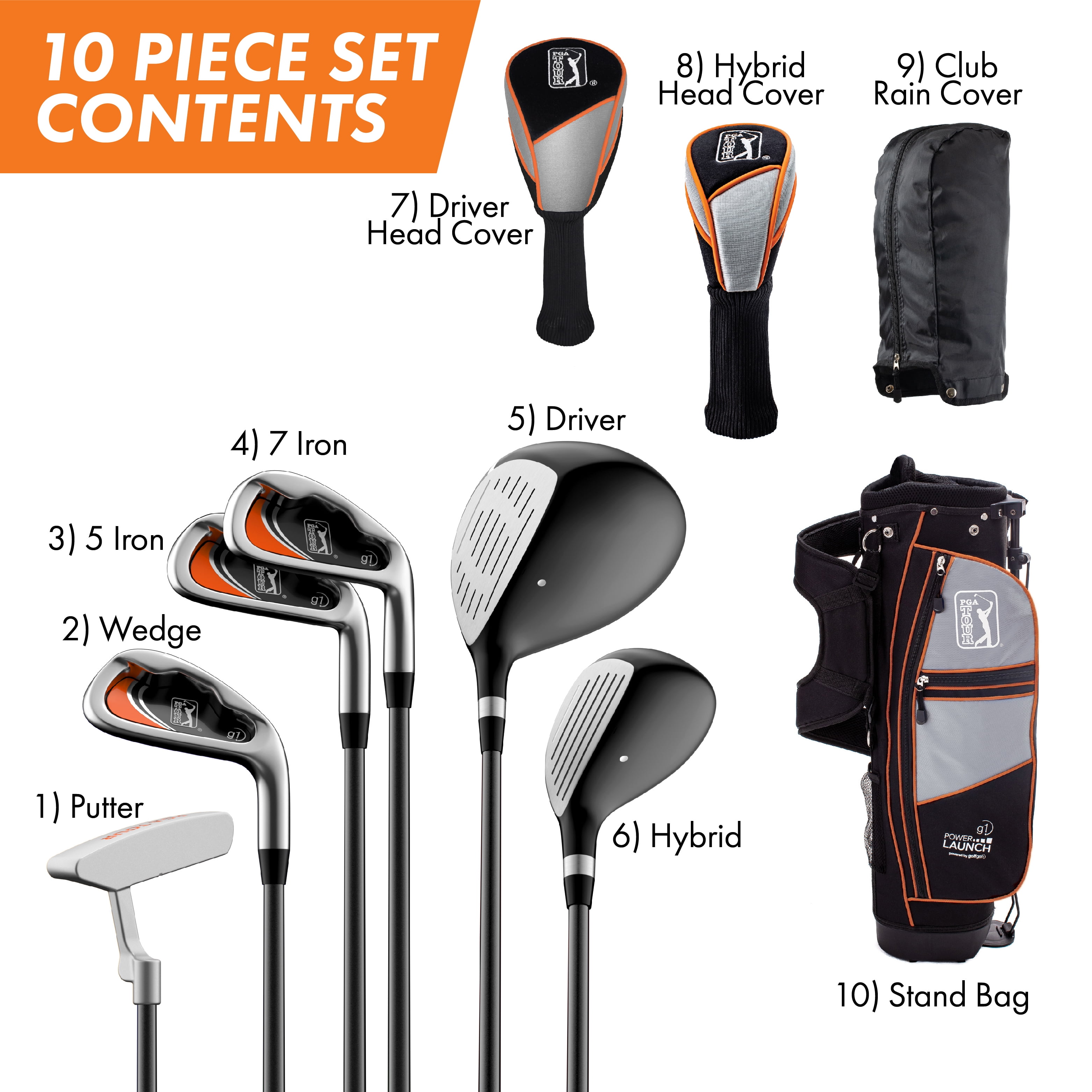 PGA Tour Right Hand 10 Piece Kids Golf Club Stand Bag Set; Player Height 5’2″+, Ages 12+