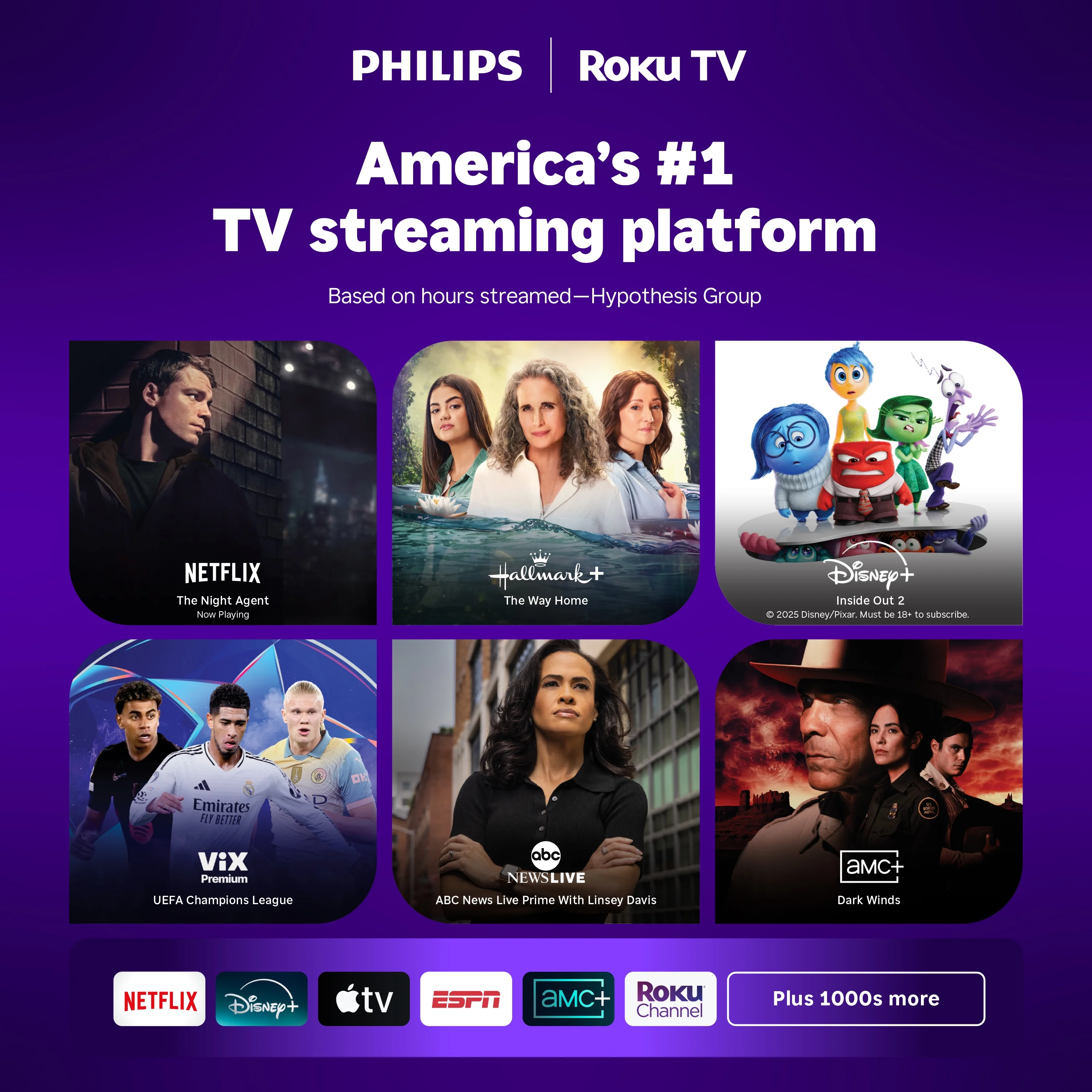Enlarge Your Viewing Experience Borderless attractive design 720p High Definition Resolution for ultra-sharp images 120 PMR delivers unprecedented motion sharpness to your TV A Simple Way to Watch What You Love 500,000+ Movies & TV Episodes Free Roku mobile app for iOS and Android Watch. Listen. Share. AirPlay lets you do it all Free Streaming on the Roku channel Works with popular Voice Assistants