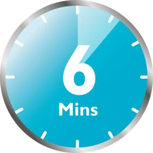 – Sterilizes in just 6 minutes; then automatically shuts off for energy savings and safety