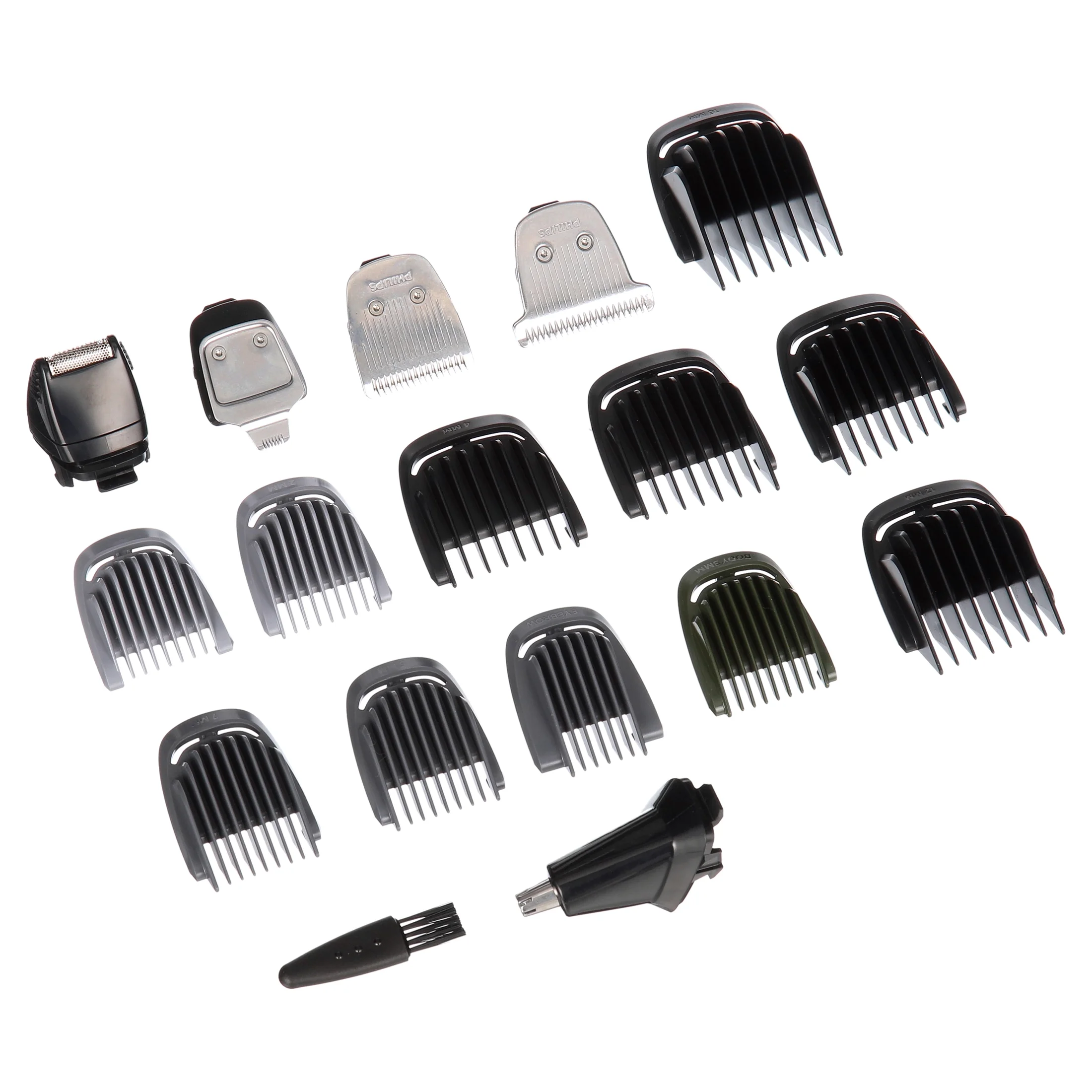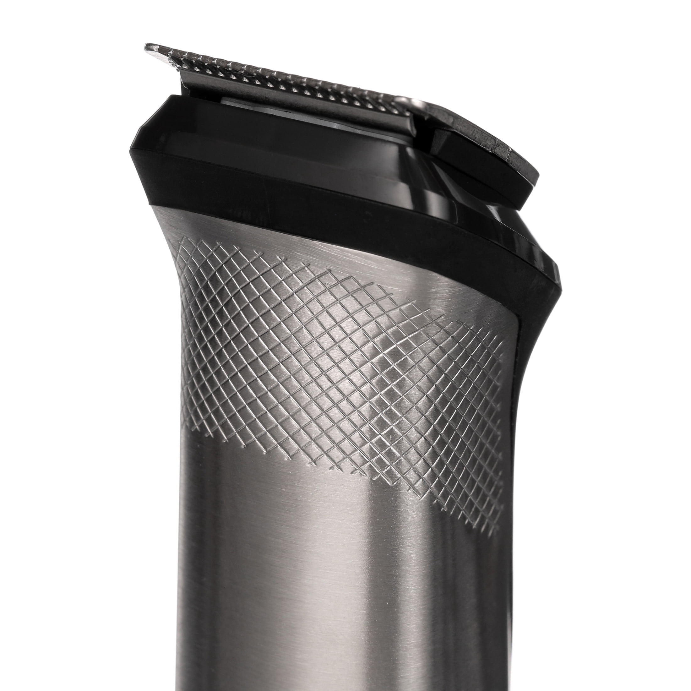 The Norelco MG7750/49 is an all-in-one Trimmer that offers everything you need, including 23 attachments, to groom your head, face, ears, and nose. It provides 5 hours of corded and cordless use after 2 hours of charging. This trimmer features dual cut technology for maximum precision with 2x more precise steel blades that allow creation of clean, straight lines and evenly trimming through even the thickest hairs. With 14 reinforced guards that are individually marked, the trimmer delivers clean, even cuts and trims on beard, stubble, head, and body. The trimmer consists of non-corrosive blades that won’t rust, and they self-sharpen to last longer its frame is made of stainless steel for long-lasting durability, and the rubber detailing delivers best-in-class comfort and control. Its narrow design makes it easy to precisely edge and finish small details and quickly trims unwanted nose and ear hair without nicks or cuts. This trimmer helps to capture more hair in each stroke for faster trimming, haircutting, and fading.