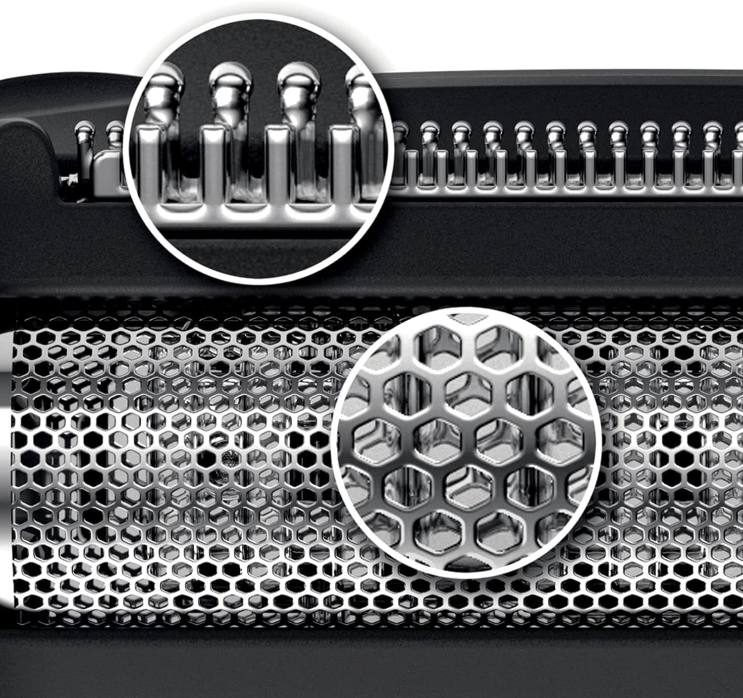 The men’s body groomer designed to capture short, long and thick hair in a single stroke. The shaver head features patented rounded tips and a hypo-allergenic foil to protect your skin from cuts and nicks.