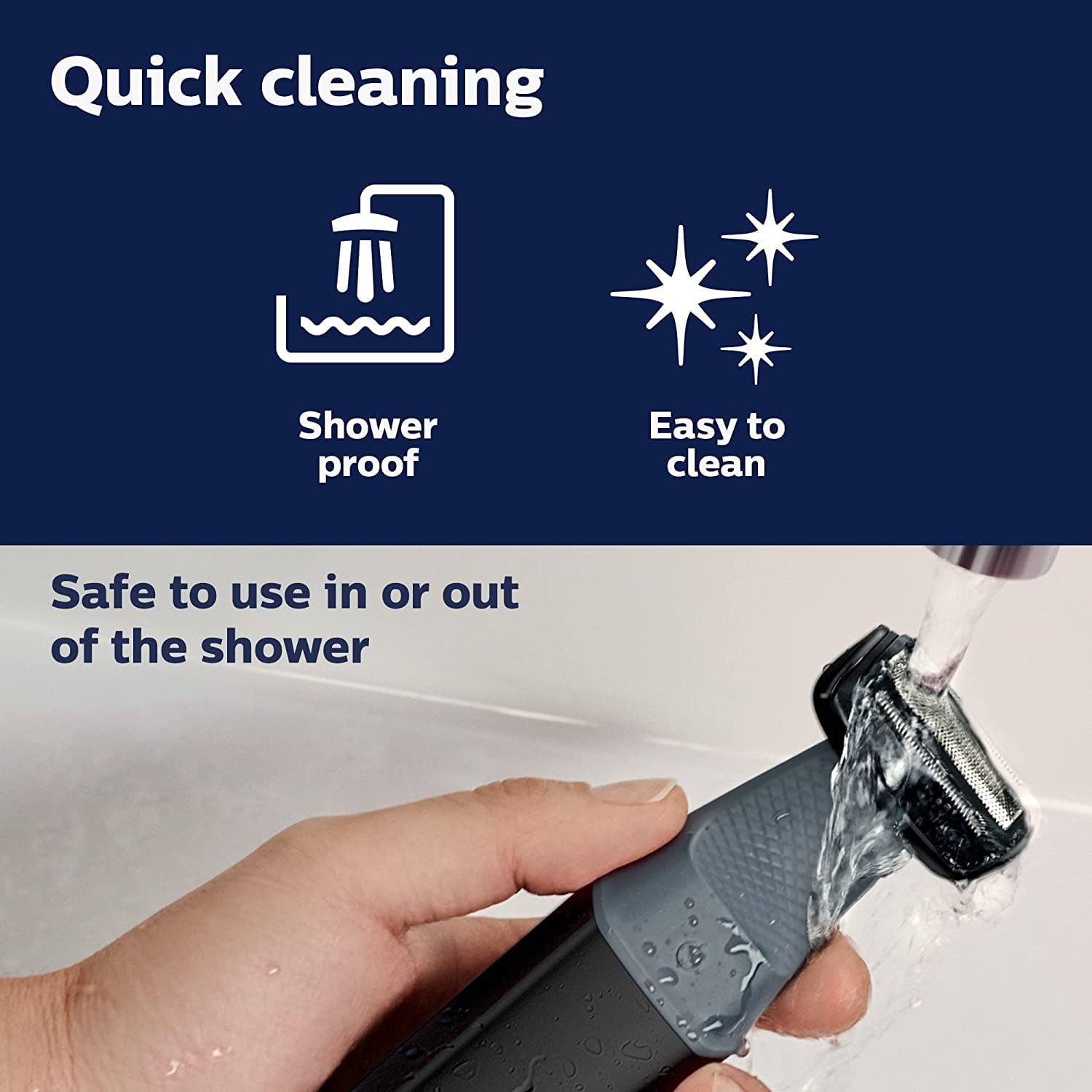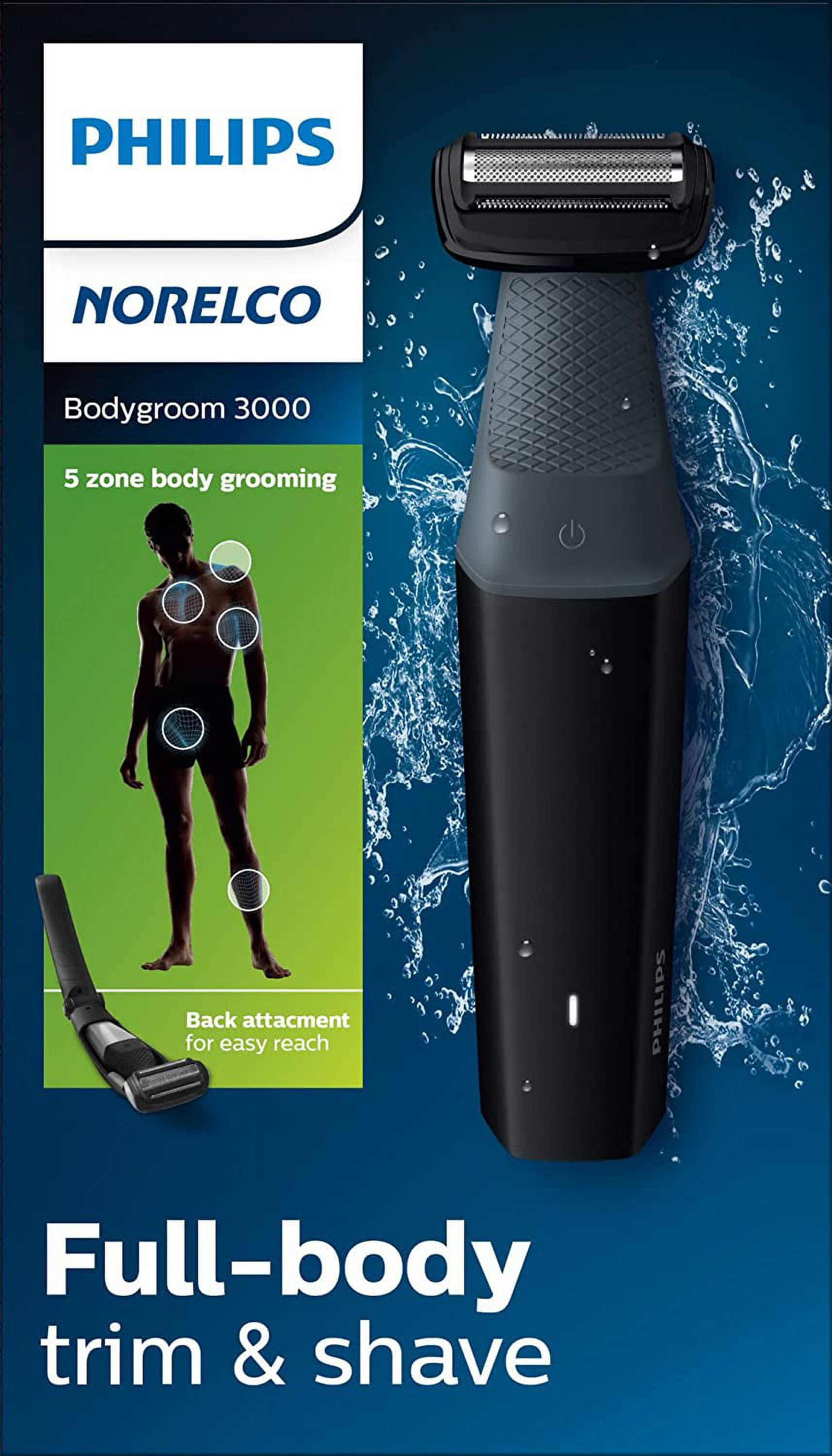 Shave or trim any area on your body, including hard to reach areas like your back, shoulders, chest, abs, underarms, arms, groin area and legs using the extra long attachment. The best Philips Norelco shaver for men. The men’s body groomer designed to capture short, long and thick hair in a single stroke. The shaver head features patented rounded tips and a hypo-allergenic foil to protect your skin from cuts and nicks. Wet or Dry- Your wet and dry body groomer is 100% water resistant. The body hair trimmer for men is specifically showerproof designed with an ergonomic rubber grip for better control when wet. Easy to clean- The Philips body trimmer for men is easy to maintain by running the detachable blade cartridge under water for a quick rinse. Powered by Rechargeable battery that allows for up to 1 hour of run time on only a 1 hour charge. 2D contour following with skin protect technology 1 click-on comb, 3mm 50 min cordless use Contour following 2D shaver Back reach attachment Shaving with safety and comfort on your delicate skin – The shaver head features patented rounded tips and a hypo-allergenic foil to protect your skin from cuts and nicks while shaving. Bidirectional trimmer and comb to trims in every direction – Cut hair that grows in any direction using the bidirectional trimmer and 3mm comb. Pre-trimming is recommended for thicker hair. Grooming those hard-to-get places with back attachment – Conveniently remove back hair. This attachment has been specially designed for convenient back grooming. 100% Showerproof body groomer – Your wet and dry body groomer is fully water proof, so you can use it in or out of the shower and clean your groomer easily. For best results, use on dry hair before showering. 50 minutes cordless use – High-power rechargeable battery for full body use, with 50 minutes of cordless use. Ergonomic grip for added grooming control – Your body groomer is easy to hold and maneuver, with a rubber ergonomic grip for more controlled trimming. Body groomer built to last with no oil required – All of our body grooming products are built to last. Accessories: Comb, Back handle attachment Power: Battery type – Ni-MH Charging: 8 hours full charge Run time – 50minutes Handle: Ergonomic grip & handling Shaving element: Foil with two pre-trimmers Skin comfort: Skin protection system, Comfort in sensitive areas Length settings: 1 fixed length setting Wet & Dry