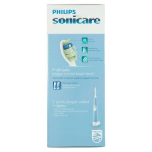 Remove more tooth-decaying plaque and avoid cavities with the Philips Sonicare 2 Series plaque control rechargeable electric toothbrush HX6211. The snap-on ProResults plaque control brush head features curved bristles to match the shape of your teeth for a superior clean that removes up to 6x more plaque than a manual toothbrush. The Easy-start feature slowly increases the power of the brush as you get used to the Sonicare experience and the Smartimer encourages a full 2 minutes brushing time. An ergonomic handle with intrinsic grip makes it easy and comfortable to hold the brush, and the two-color battery charge indicator lets you know when it s time to recharge. This kit includes 1 Philips Sonicare 2 Series rechargeable toothbrush, 1 ProResults plaque control brush head, and 1 charger