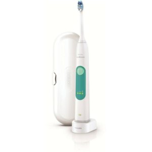 – Includes: 1 Philips Sonicare rechargeable toothbrush, 1 ProResults gum health brush head, 1 travel case, 1 travel charger and 1 hygienic travel cap