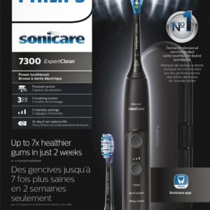 Philips Sonicare ExpertClean 7300 will guide you between dentist checkups and experience improved oral health. With a built-in pressure sensor and the smart sensor progress report, the power toothbrush has everything you need to guide you into better oral healthcare habits starting day one. The Premium Gum Heath brush cleans effectively along the gumline where gum disease commonly starts out and experience 7x healthier gums in just 2 weeks. ExpertClean 7300 removes up to 10x more plaque and reduces gum bleeding up to 5x better than manual toothbrush. Personalize your brushing experience with 3 modes and 3 intensities and always know when to replace your brush head with BrushSync Technology. Your healthier smile is just a day away. 1 Philips Sonicare handle, 1 travel case, 1 charger, 1 Premium Plaque Control brush head, 1 Premium Gum Health brush head