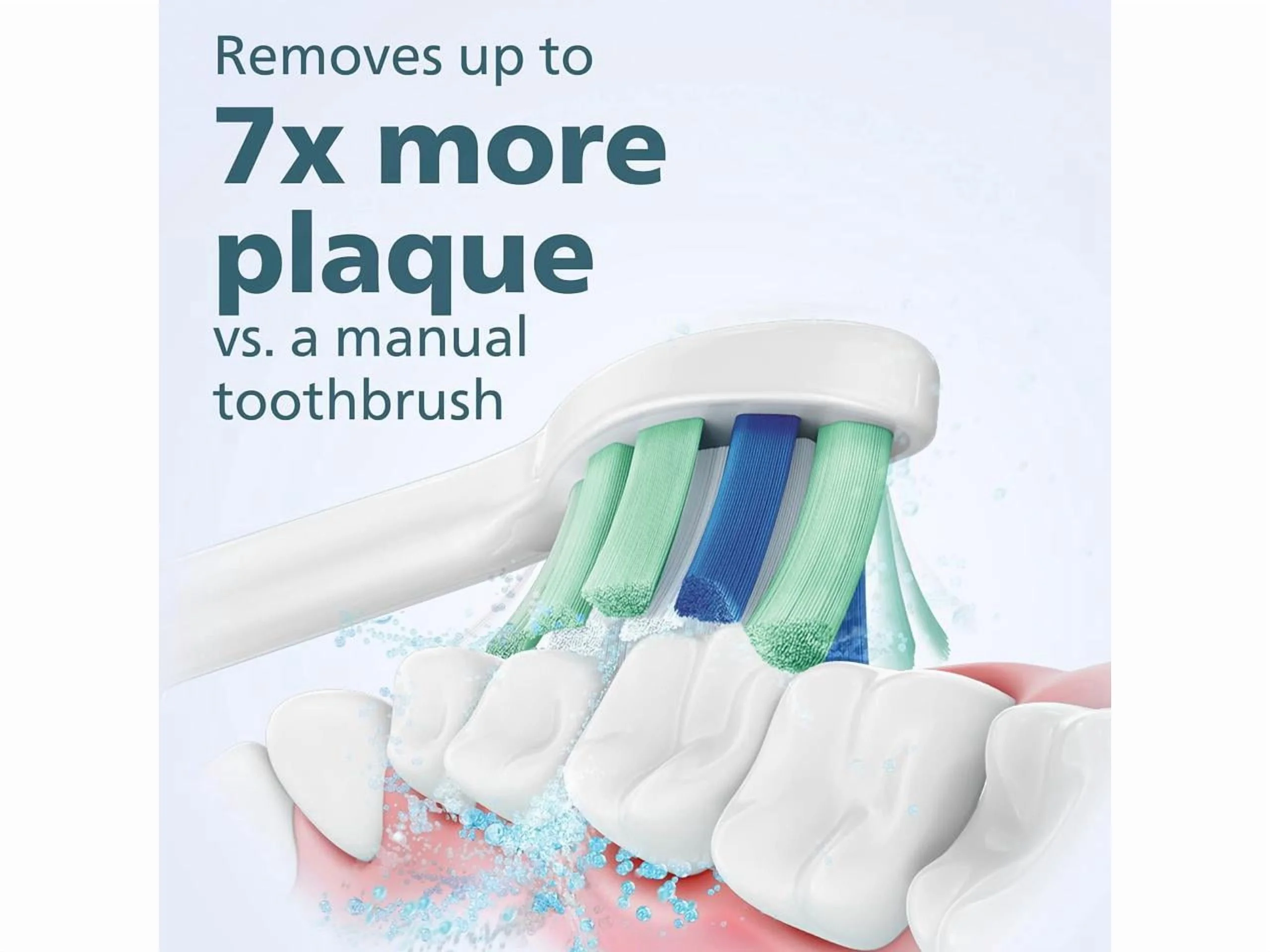 Removes up to 5x more plaque vs. a manual toothbrush Pressure sensor and two intensity settings protect sensitive gums from overbrushing 2 minute SmarTimer with QuadPacer ensure Dentist-recommended brushing time Brush head replacement reminder ensures your brush head is always effective Long battery life with battery light indicator: One charge last for 2 weeks