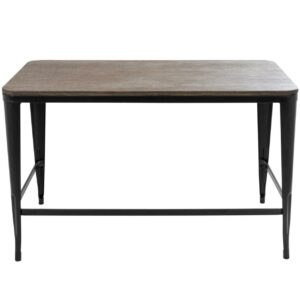 – Industrial styling. Antique espresso wood top. Sturdy metal frame