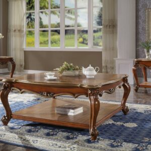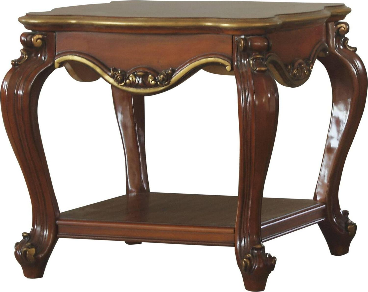 Built with traditional style, the occasional table features an scalloped shape top and four curved cabriole legs. The raised floral motifs added to the aprons of table show off a classic, sophisticated design detail of this piece. Down below, the open bottom shelf offers you an extra space to keep the table top clear. Add a new level of elegance to your living room with this classic end tables.