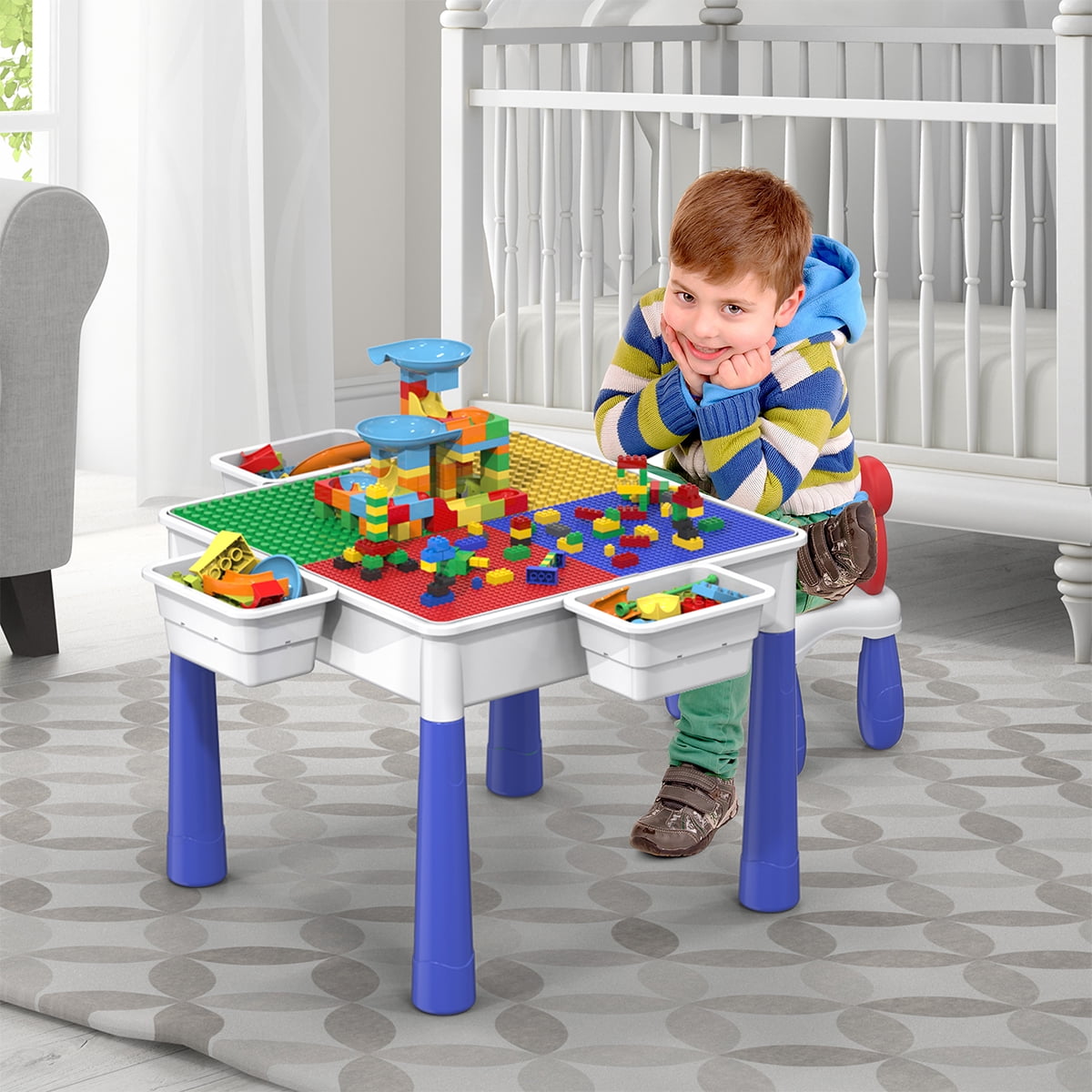 PicassoTiles Kids Multi Activity Table with Chair & Storage, 581PCS Building Blocks & Marble Run, STEM Construction Toy for Kids Age 3+