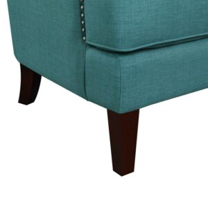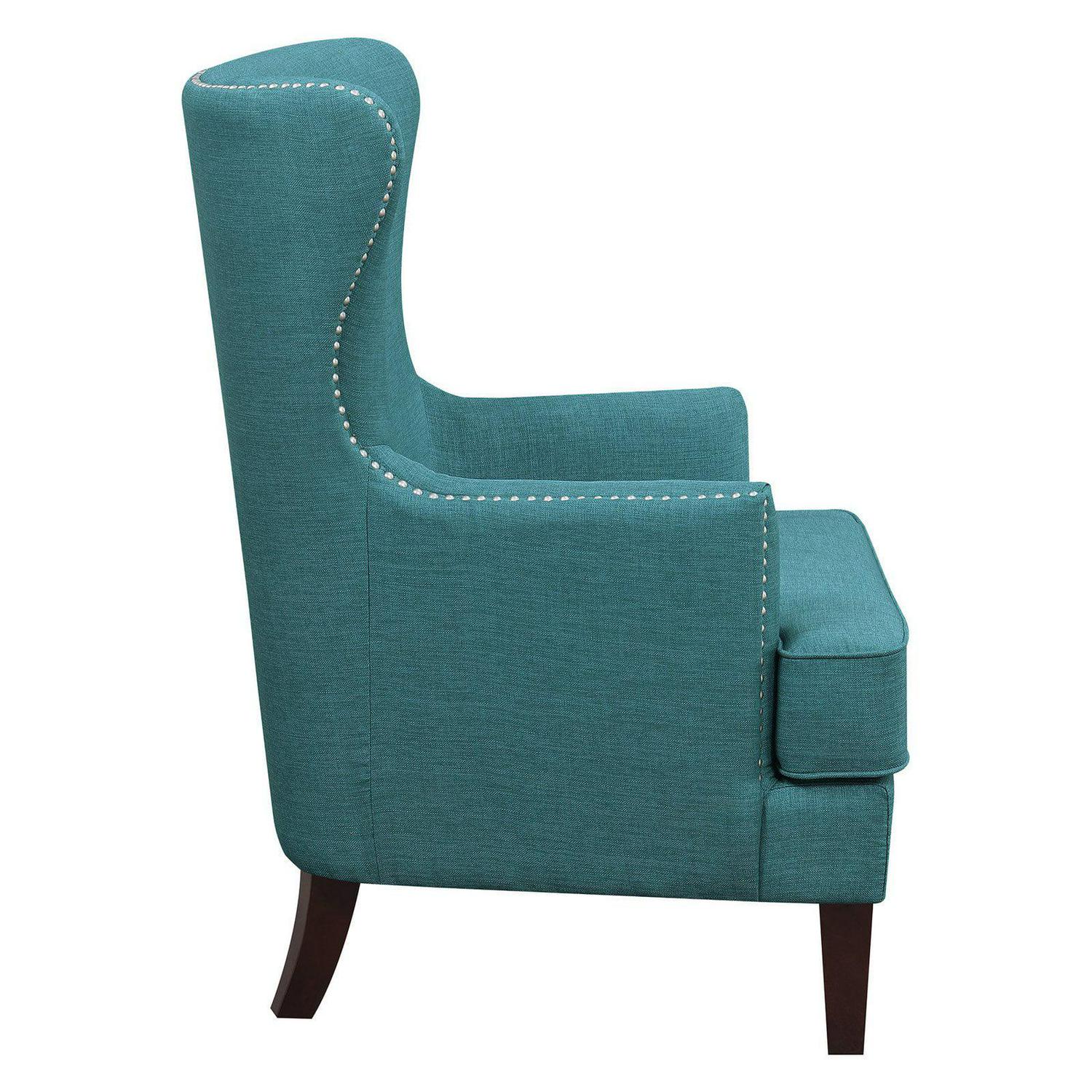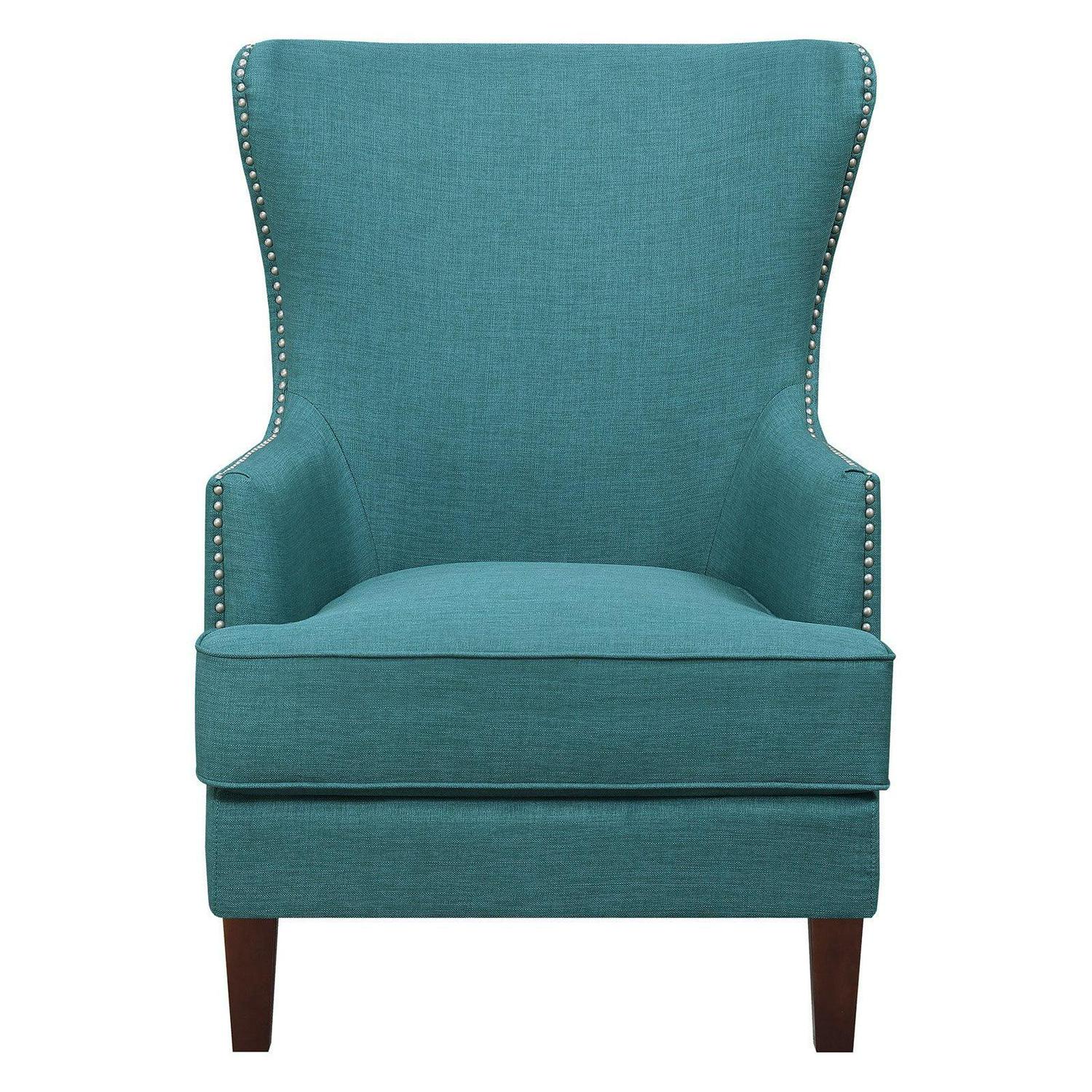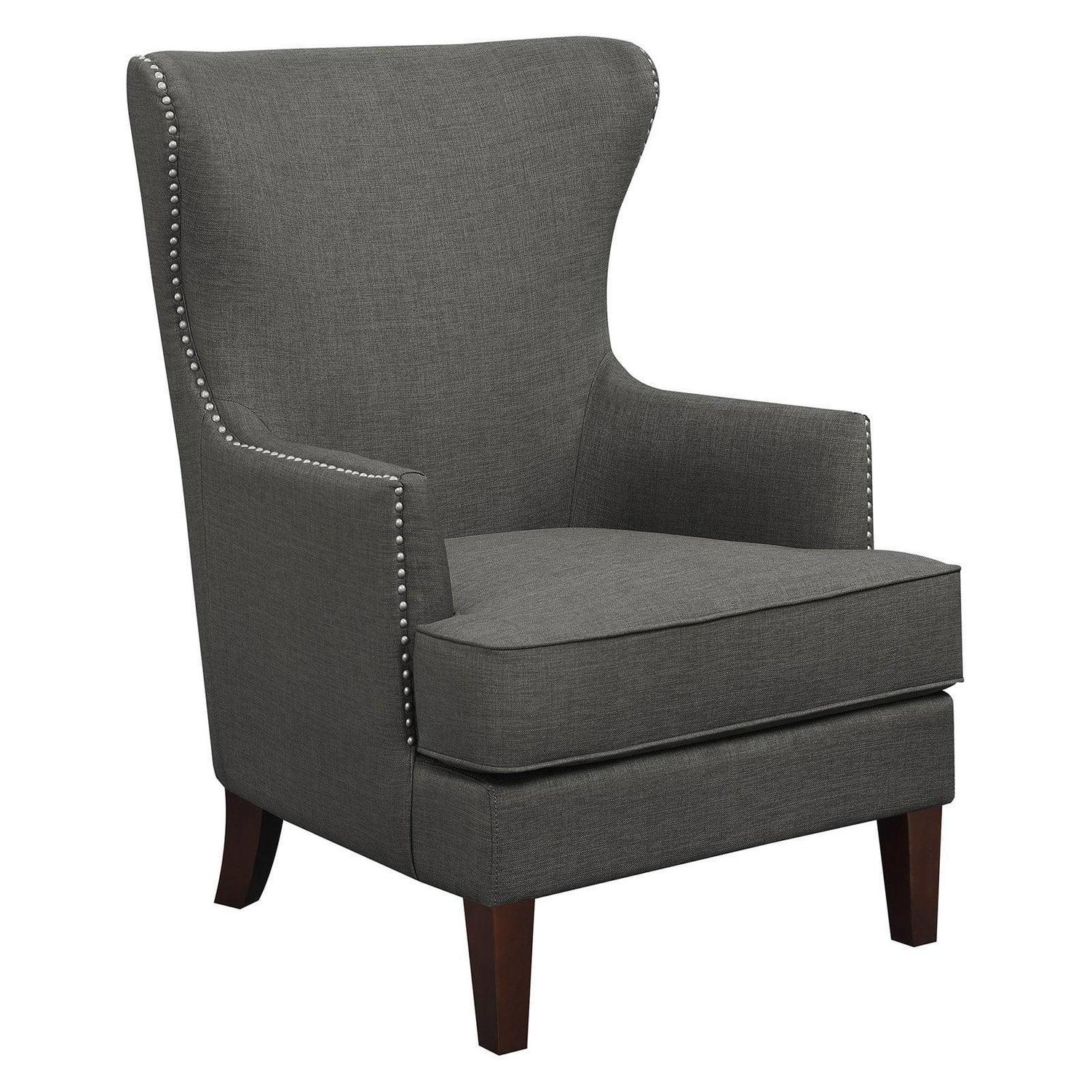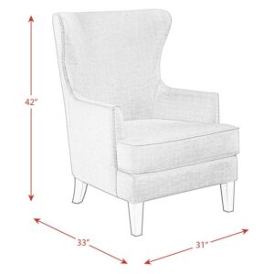 Styled to wake up the room, the Picket House Furnishings Avery Wingback Chair draws upon mid-mod inspirations to update the classic wingback armchair. Nail head studs accentuate the dramatic silhouette. Foam cushioning in the arms, seat, and back cushion ensures comfort. The seat is shored up with supportive springs as well as webbing. Webbing also plays a supporting role for the backrest. Straight arms and square, tapered legs evoke a clean-cut feel.