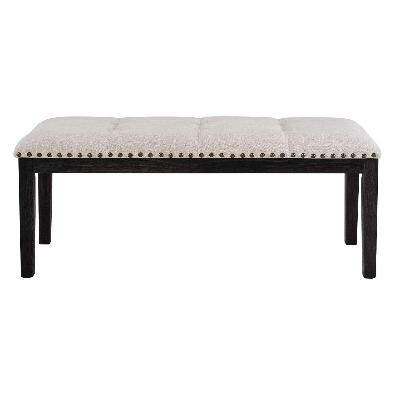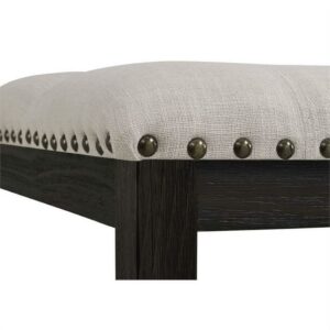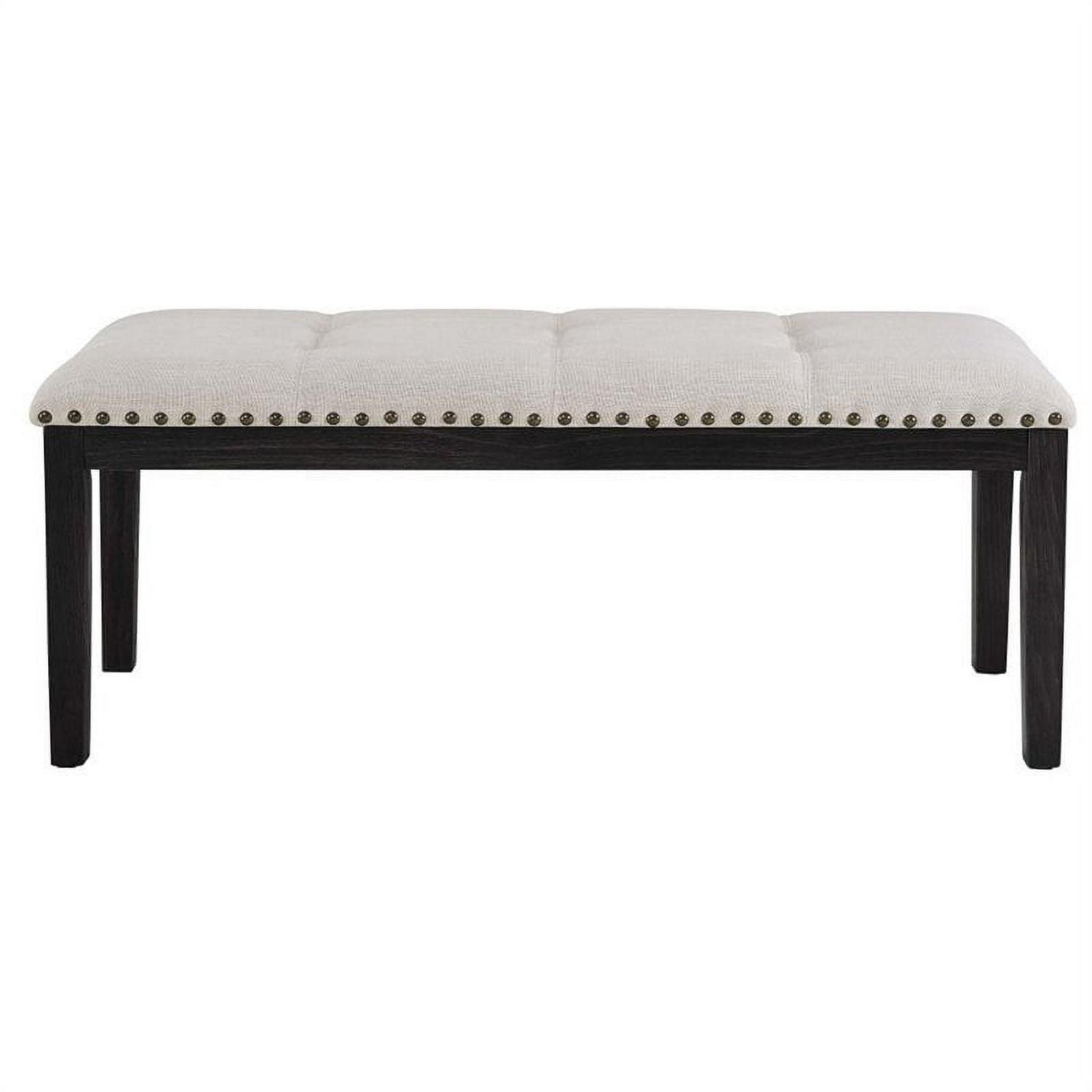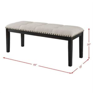 Mix up your dining room seating arrangements with the Picket House Furnishings Bradley Upholstered Indoor Bench. Perfect for adding an elegant flair that isn t too formal, this transitional bench features nailhead trimming and button tufting on the beige, linen-like fabric. The dark walnut finish perfectly complements the upholstery and brings out the richness of the wood grain of its robust solid wood and engineered wood base. Designed for use with your dining table, this bench is also a great addition to entryways, lofts, and bedrooms.