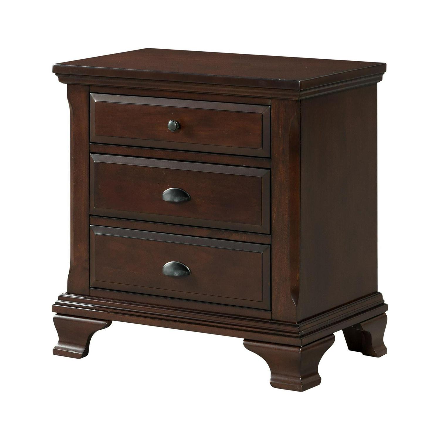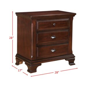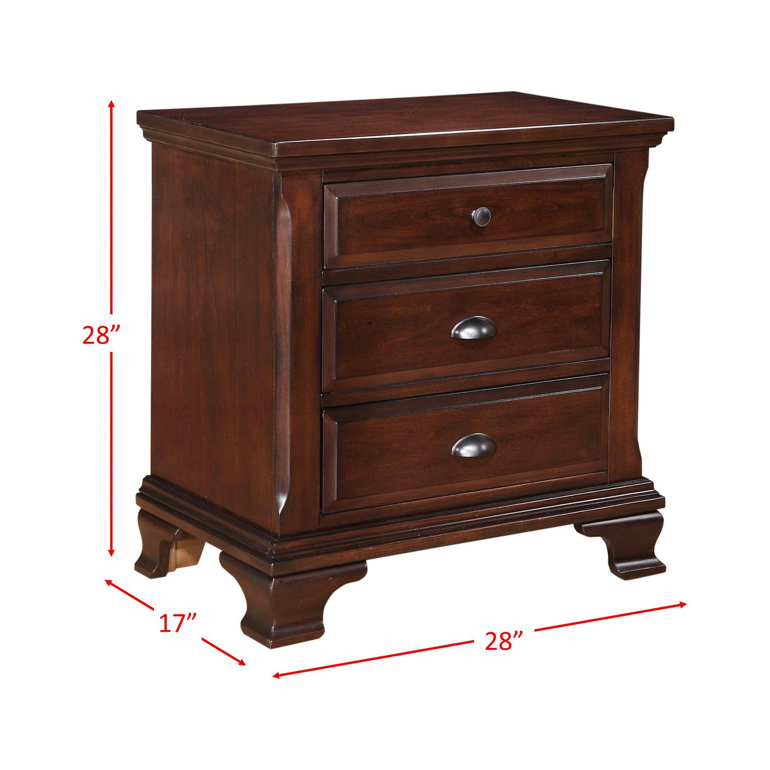 Brinley Cherry NightstandCherry Finish 3 Spacious Drawers Antique Pewter Pulls & Knobs