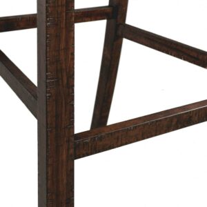The Picket House Furnishings Dex 30″ Ladder Back Bar Stool Set is the perfect addition to your Dex Dining Collection! This set comes with two bar stools. The solid back design and seat are upholstered in a dark taupe. The foam cushion seat and back will keep you comfy for hours. Distressed markings are present throughout that complements the dark walnut finish. Nail head trim outlines the edges of the back and seat. Complete your rustic farmhouse home by adding these barstools to the mix.