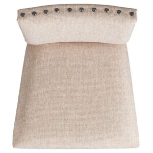 - Linen-look fabric and solid acacia and rubberwood frame