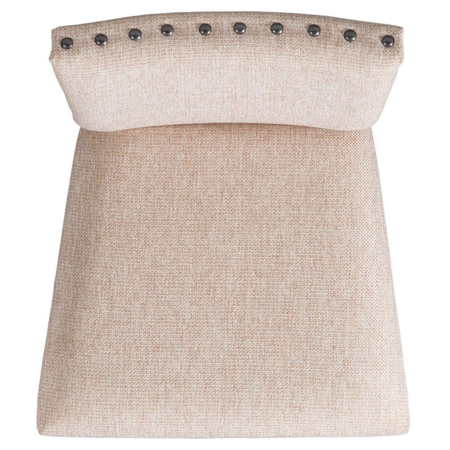 - Upholstered back and seat with nail head trim