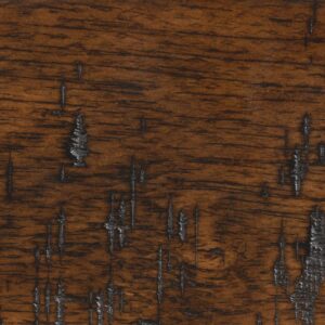 – Dark taupe fabric and physically distressed walnut wood finish