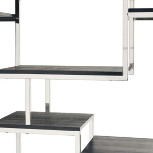 If you decided that you wanted to enjoy the Picket House Furnishings Harper Decorative Cube Bookshelf – Chrome/Black without putting up a single book, knickknack, or photo, we’d totally understand. This glamorous bookshelf features a frame made from square-tube steel with a polished chrome finish. Ten shelves of different sizes are arranged in an asymmetric pattern that keeps your eye engaged while you enjoy the design. Each shelf is made from engineered wood with a black exterior of wood-like laminate. This shelf is finished on all sides, so you can use it with any side forward or you can let it act as a divider in an open space.