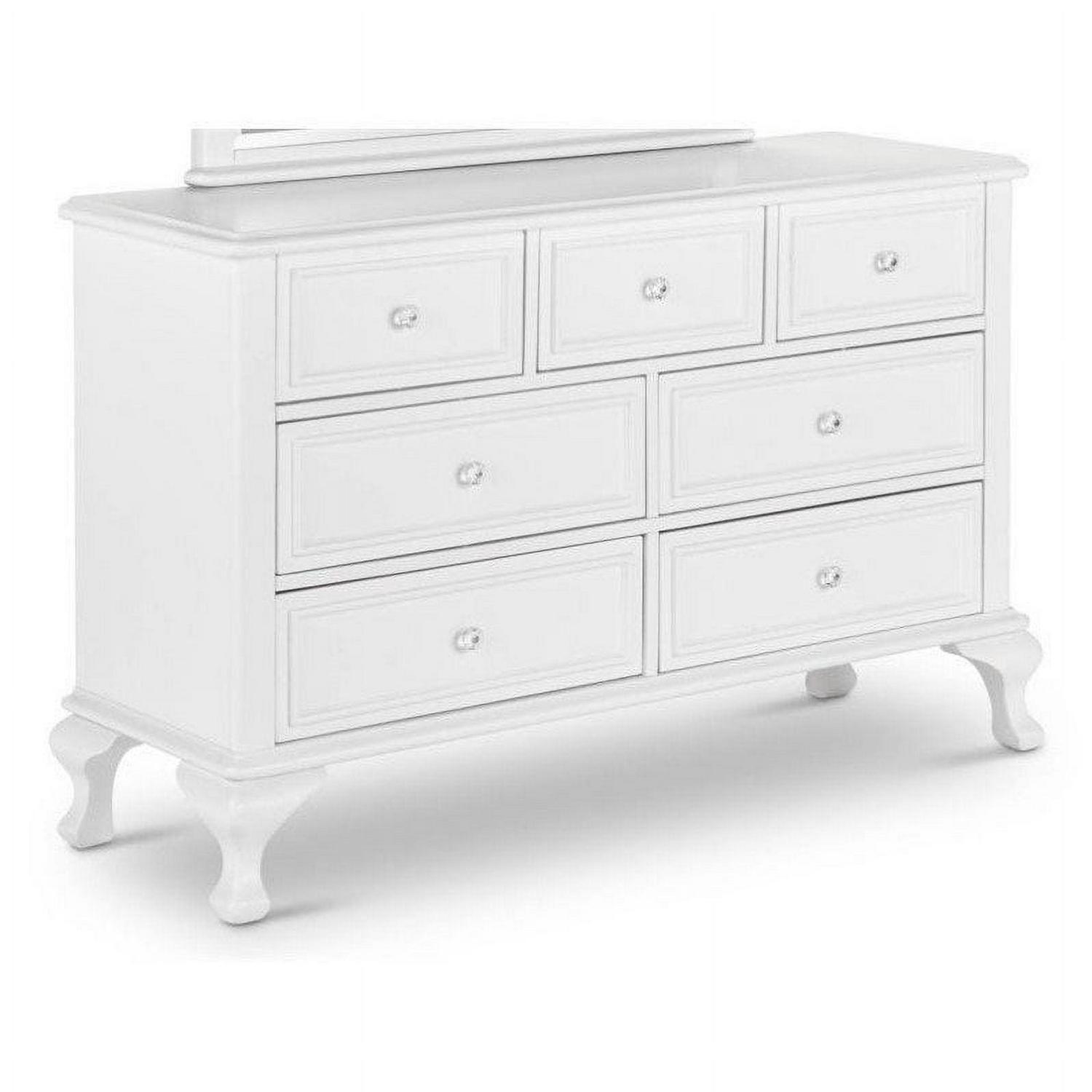 The Picket House Furnishings Jenna 7-Drawer Dresser is going to look stunning in your little one’s room! This horizontal dresser comes with four spacious drawers on the bottom, perfect for storing away bulkier items; while the top three drawers are great for everyday items. The bottom drawers feature a dust-proofing layer to help protect your belongings. The crisp, white finish makes it easy to pair with any existing decor. The crystal-like acrylic drawer pulls complete the look of this charming dresser that your little one will love!