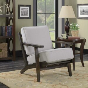 The Picket House Furnishings Mercer Accent Chair will keep you in style while you relax. This Adirondack style chair is the perfect addition to your living space, with its contemporary show wood frame. The back features a ladder back design, adding extra flair to this already stylish set. The transitional antique wooden frame makes it easy to pair this accent chair with existing decor. The seat and back cushions are foam filled and will let you kick back and relax in style without losing comfort.
