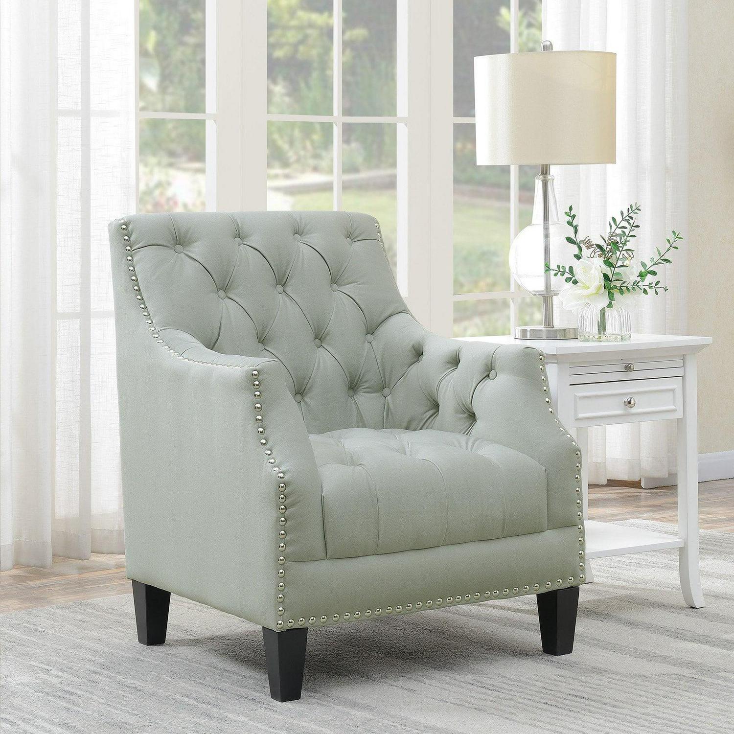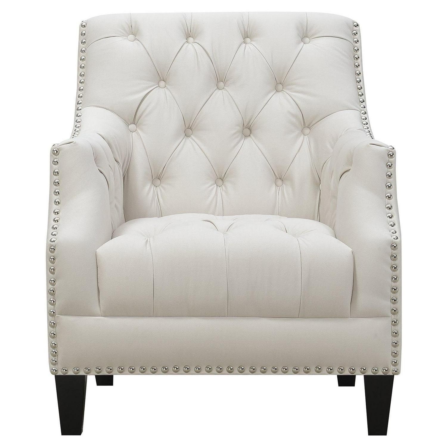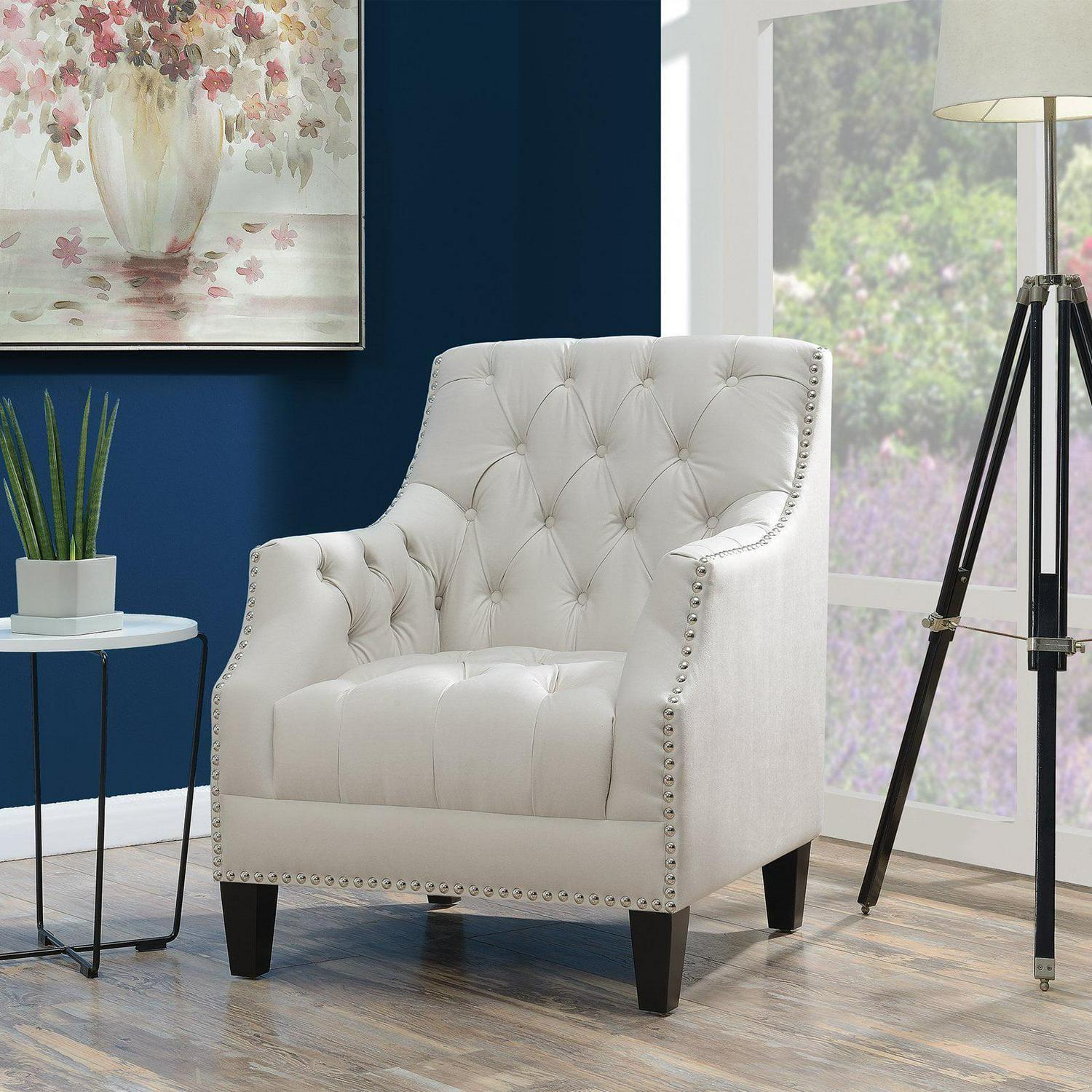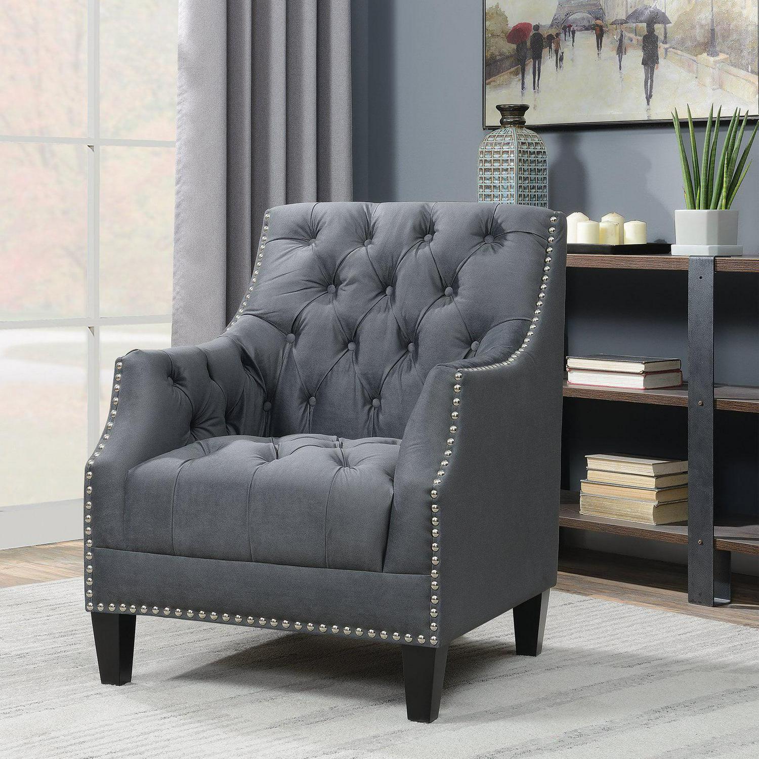 - Button-tufted seat, arms, and back