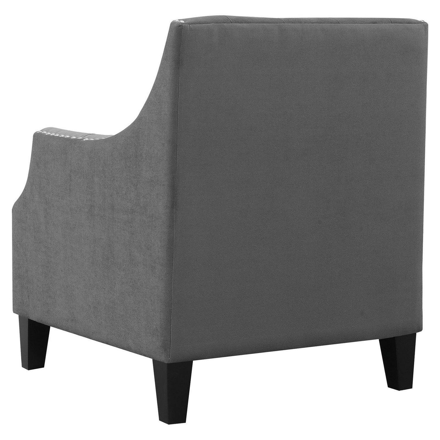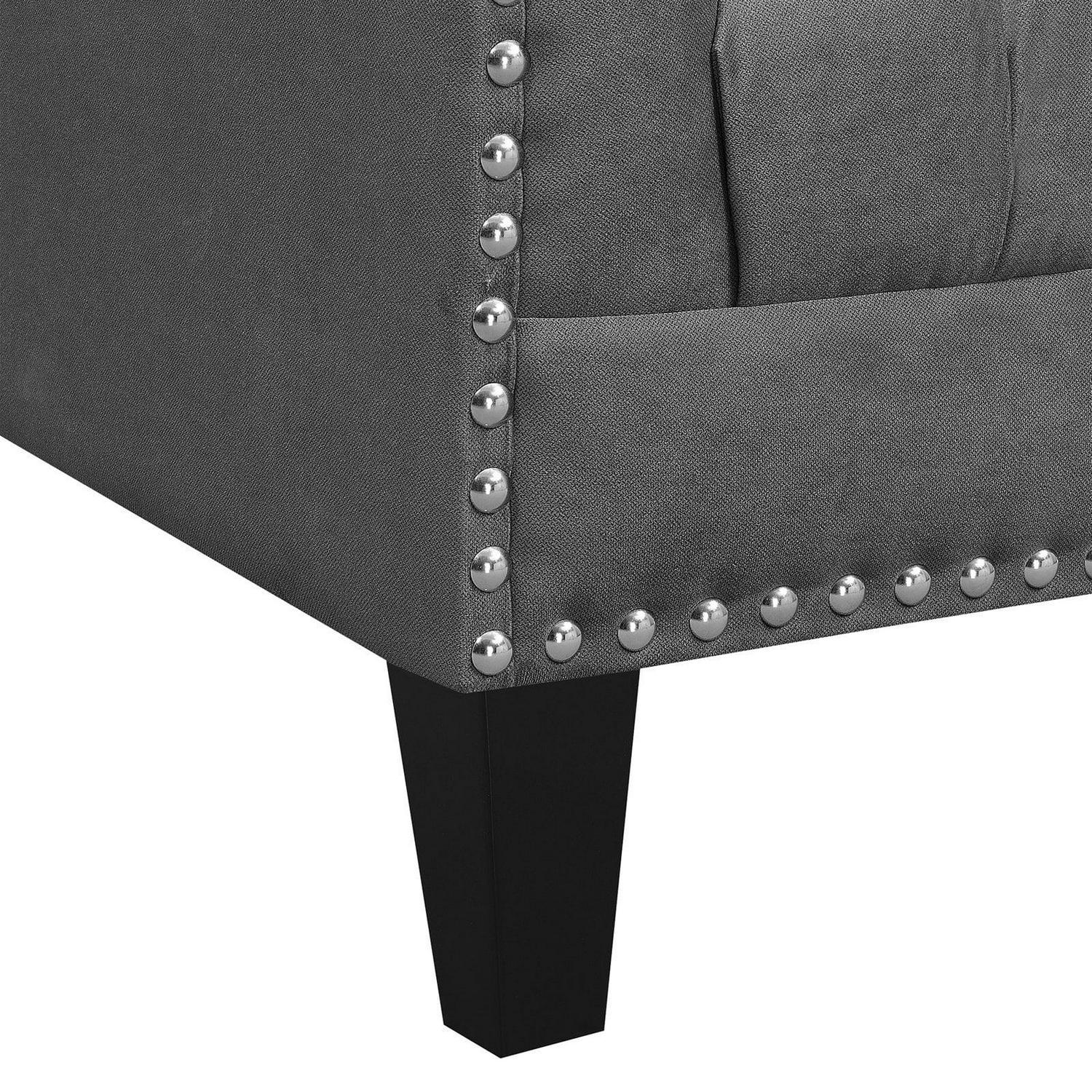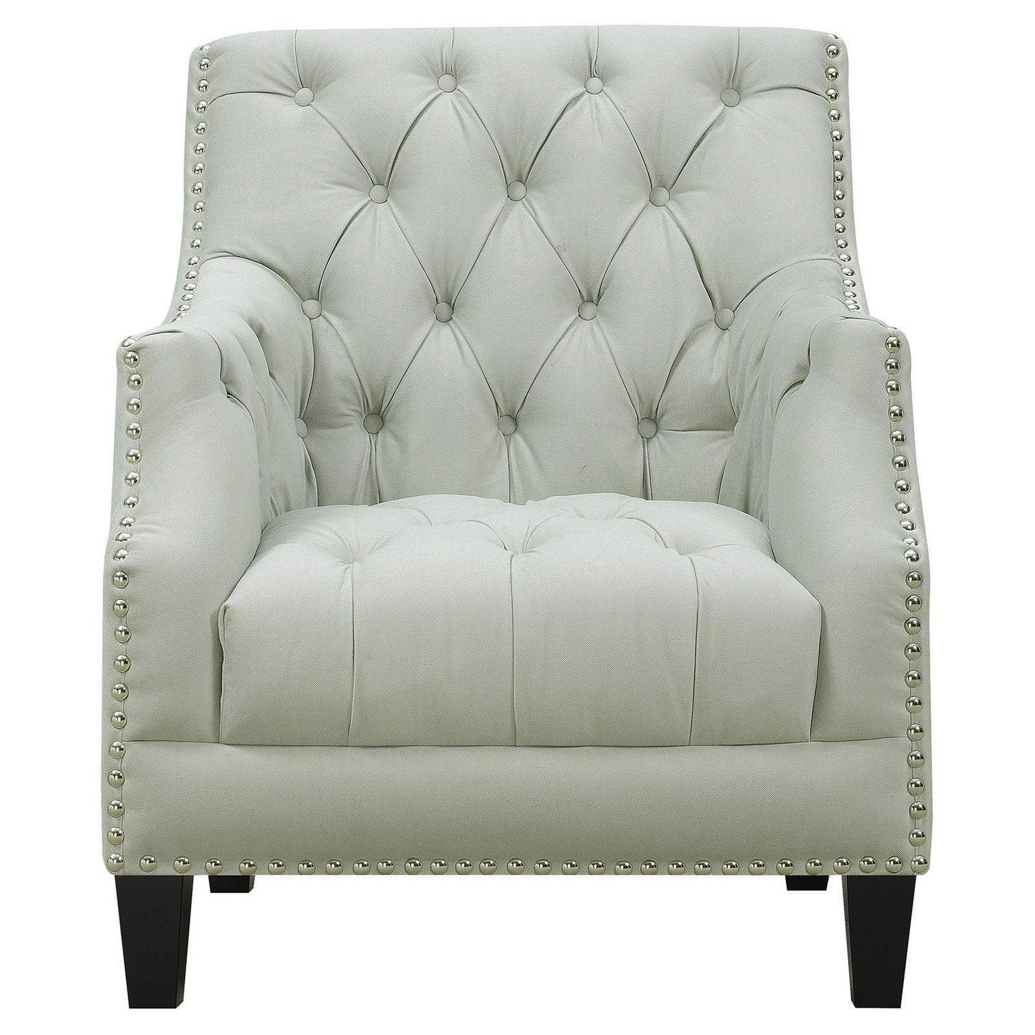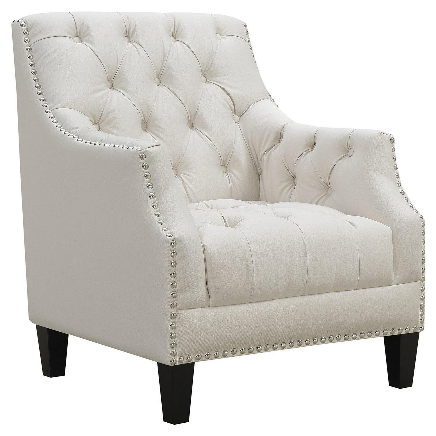 - Button-tufted seat, arms, and back