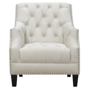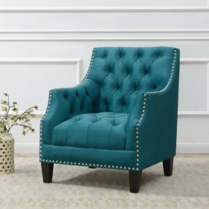 – Button-tufted seat, arms, and back