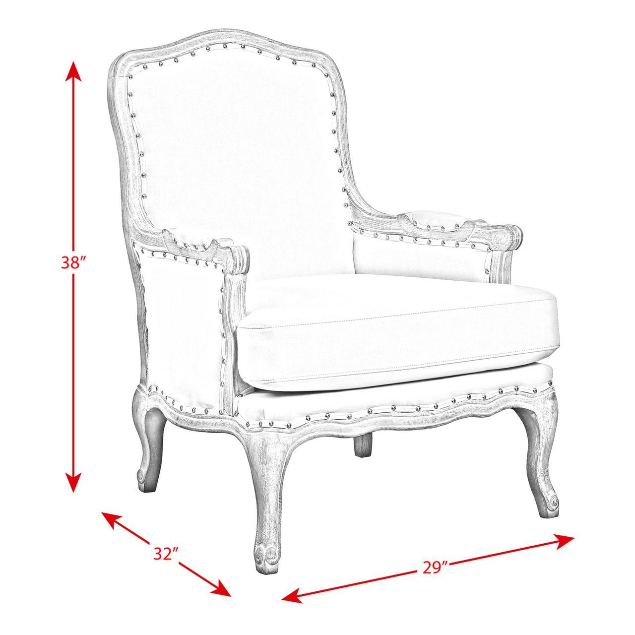 The Picket House Furnishings Regal Accent Chair is classic French style and will look gorgeous in your home for years and years! This classic French style chair is going to look amazing in your home, no matter where you decide to display it. The Regal is mostly upholstered, with the exception of the outline of the chair which is a distressed wooden base. Nail head trim outlines all of the upholstered areas of the chair, even the padded arm rests. Cabriole feet, which are synonymous with classic French style, complete the look of this chair. Foam cushion seat and back will provide comfort while you relax in ultimate chic style.