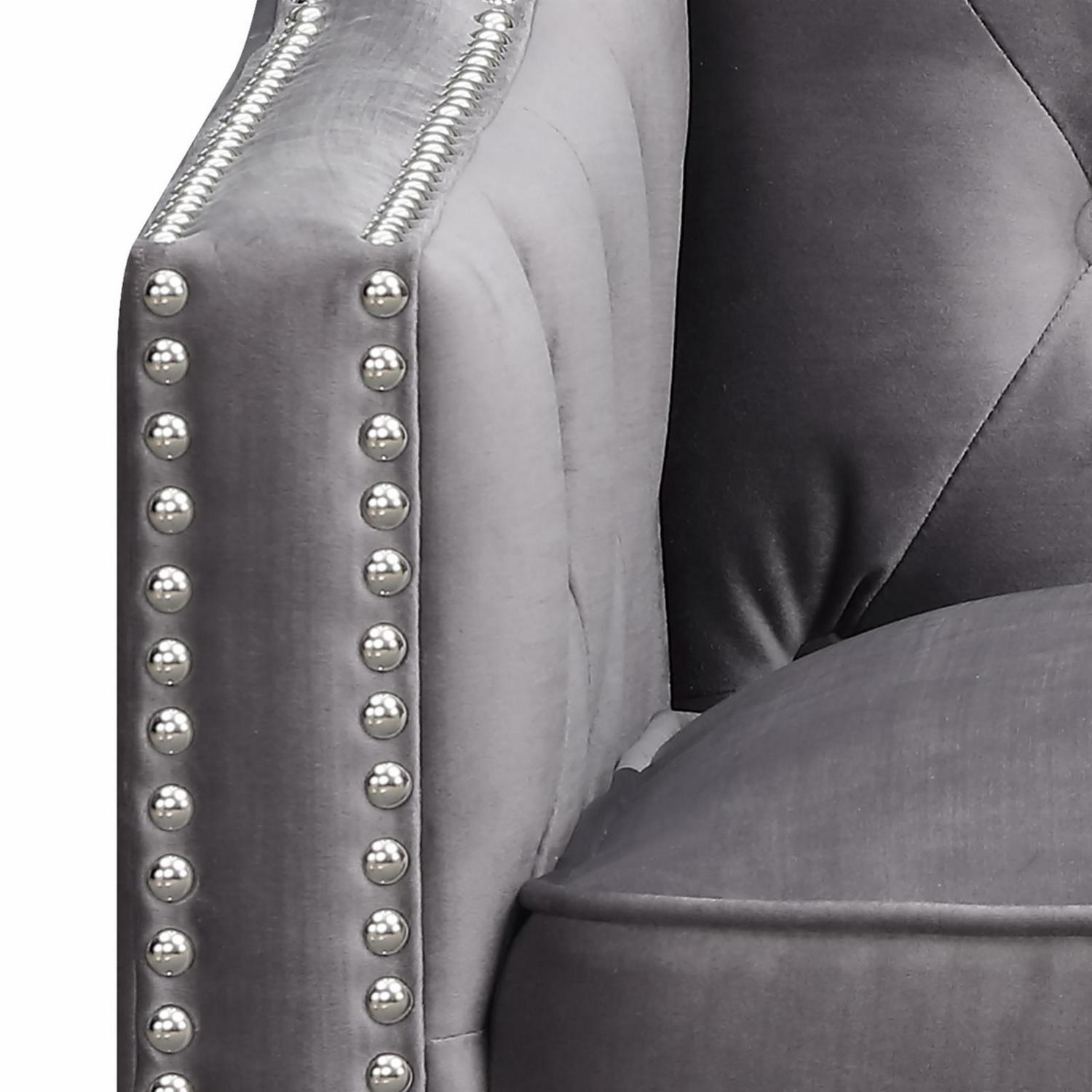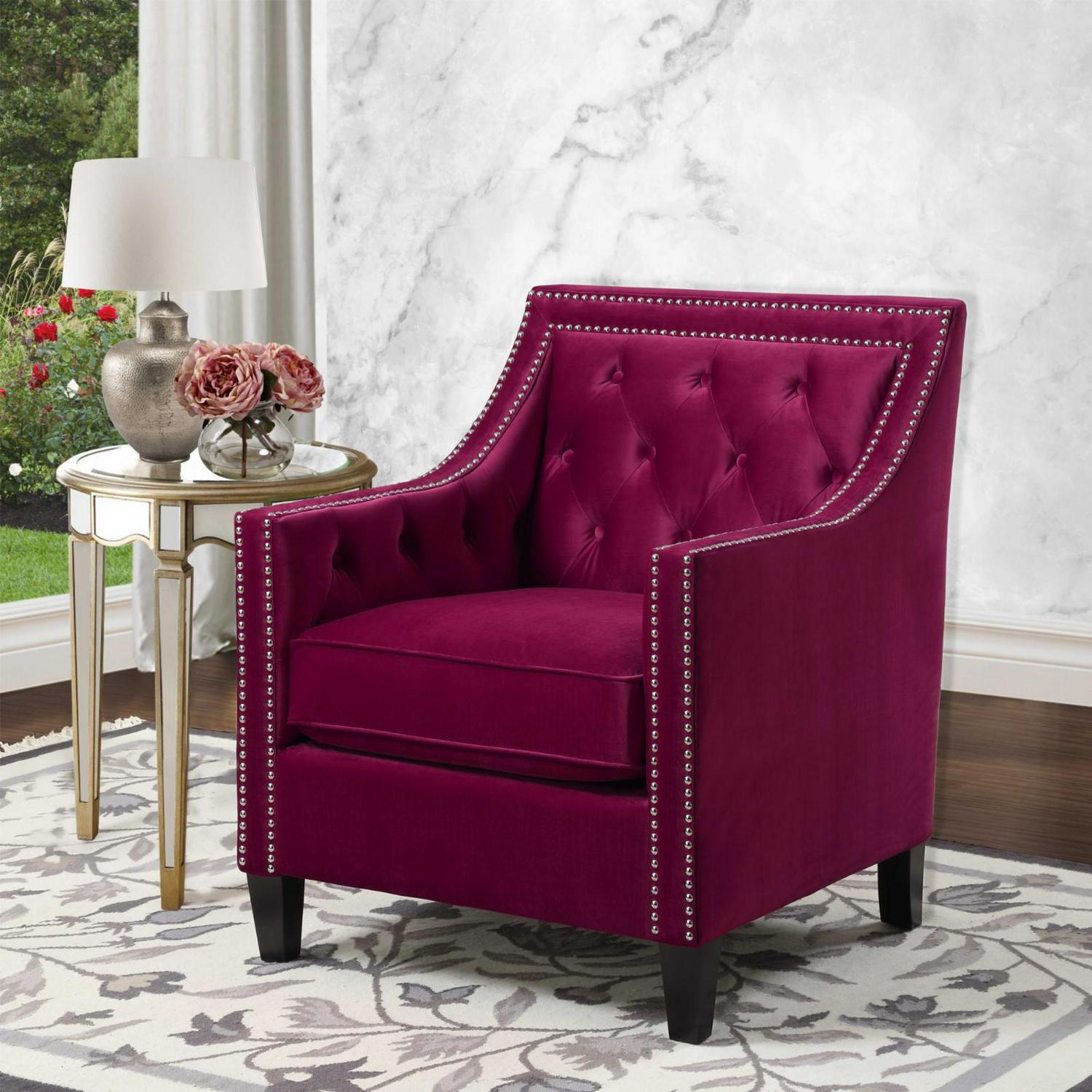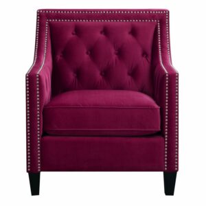 A touch of glamour and luxury amps up the Picket House Furnishings Teagan Accent Chair without being overpowering. Foam, S-springs, and coil springs upholster the pine and plywood frame for stability and comfort. Everything is covered in a soft, glamorous polyester in your choice of available colors. Nail head trim, button tufting, and diamond stitching give this accent plenty of texture and eye-grabbing dimension. Add this sleek piece to your living room for extra seating and style.