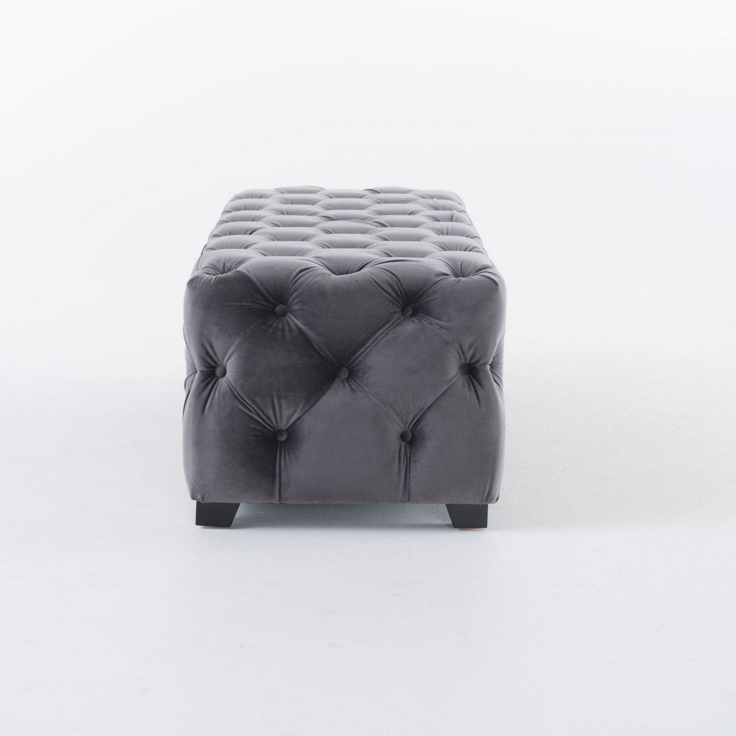 Provence Tufted Velvet Fabric Rectangle Ottoman Bench The Provence tufted ottoman bench is the perfect addition to any room that is in need of an ottoman that can double as a comfortable seat. This ottoman is both soft and stylish, giving you the best of both worlds, allowing you to relax knowing that your guests are comfortable and when they leave at the end of the night you can put your feet up in comfort.