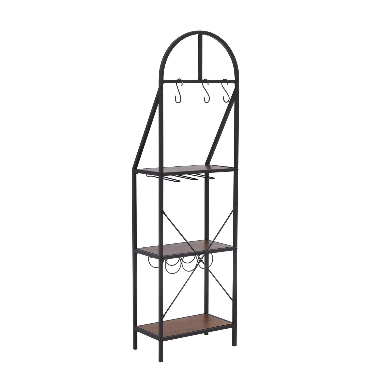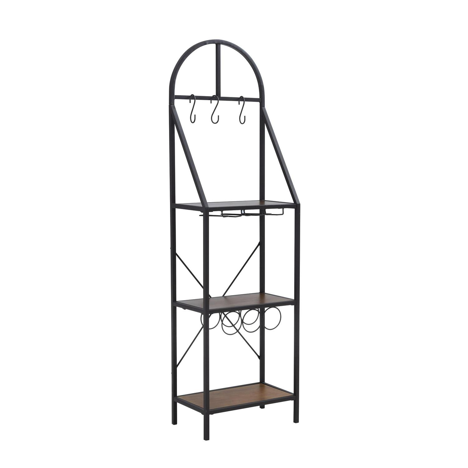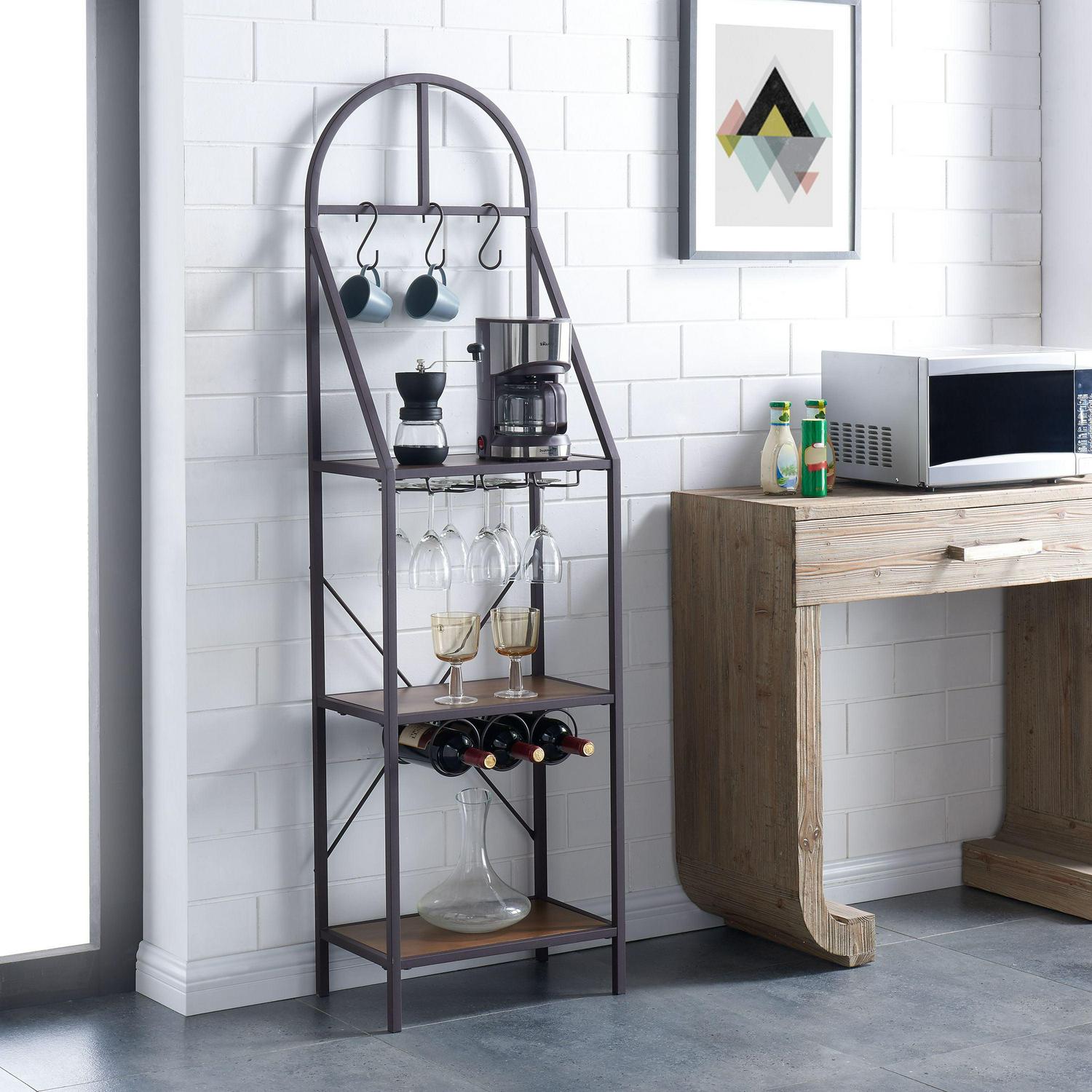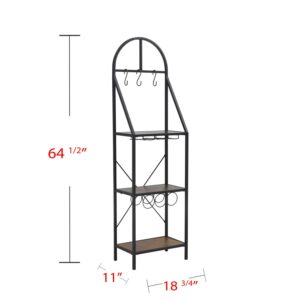 Southern Enterprises Pirricole Bakers Rack, Modern Farmhouse Style, Rustic Brown: A toast to you. This bakers rack holds wine glasses, bottles, and even a toaster! With a slender profile for smaller spaces, three dark pine shelves work for anything from dishware to consumables. Rustic brown metalwork makes the amenities of wine bottle and glass storage, and removable towel hooks, ideal for an open concept living space. Add this storage tower to your kitchen, for a touch of industrial style. Functional and stylish, this bakers rack holds all your kitchen entertainment needs.