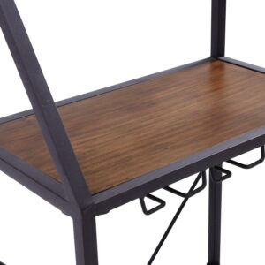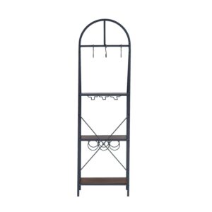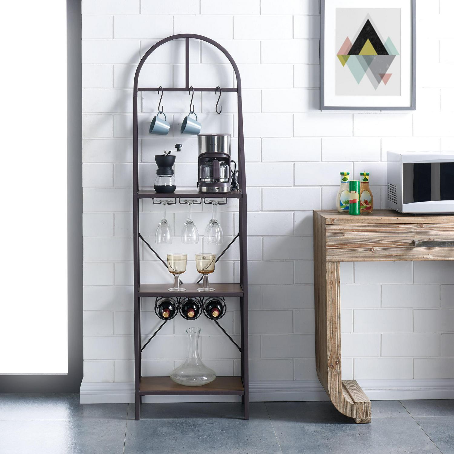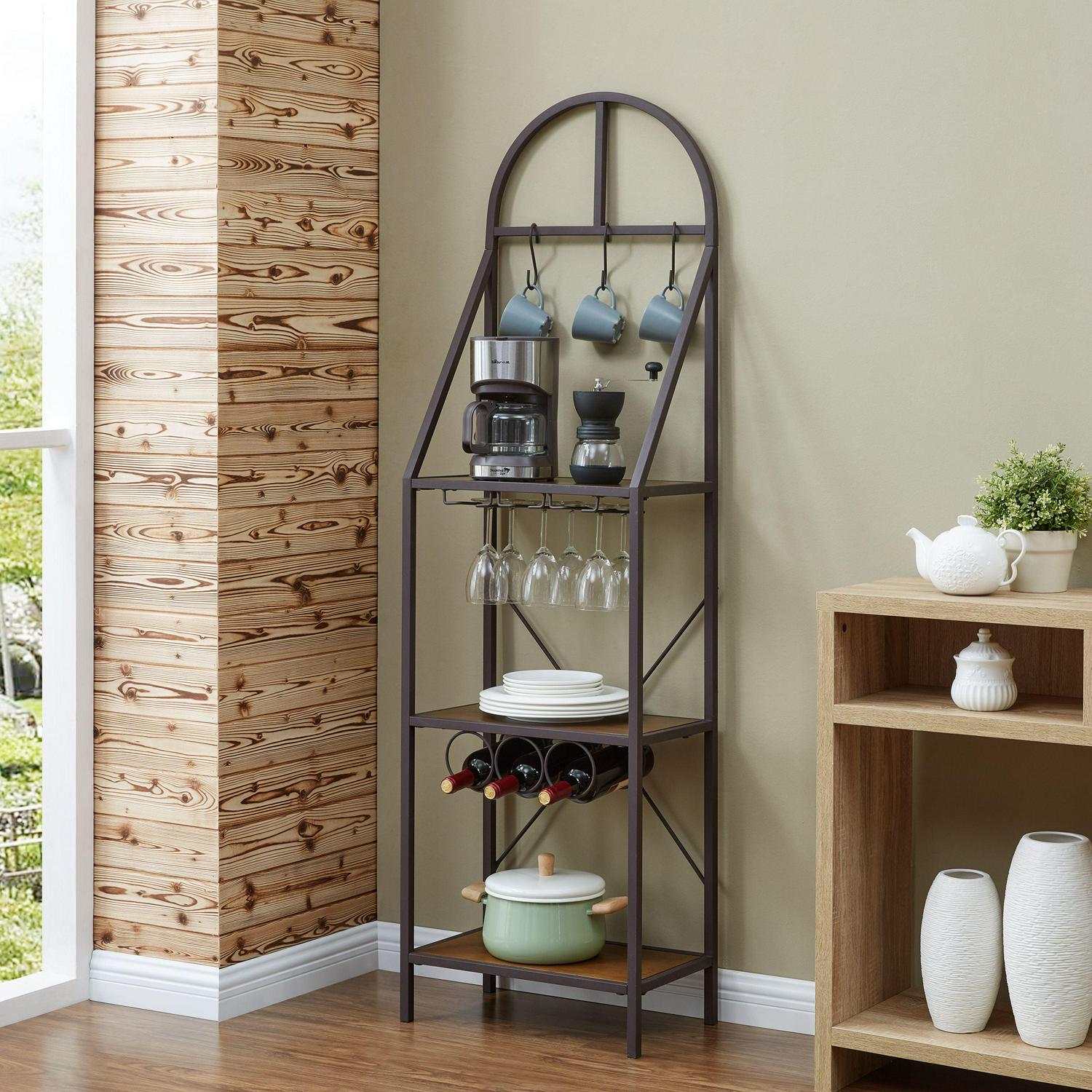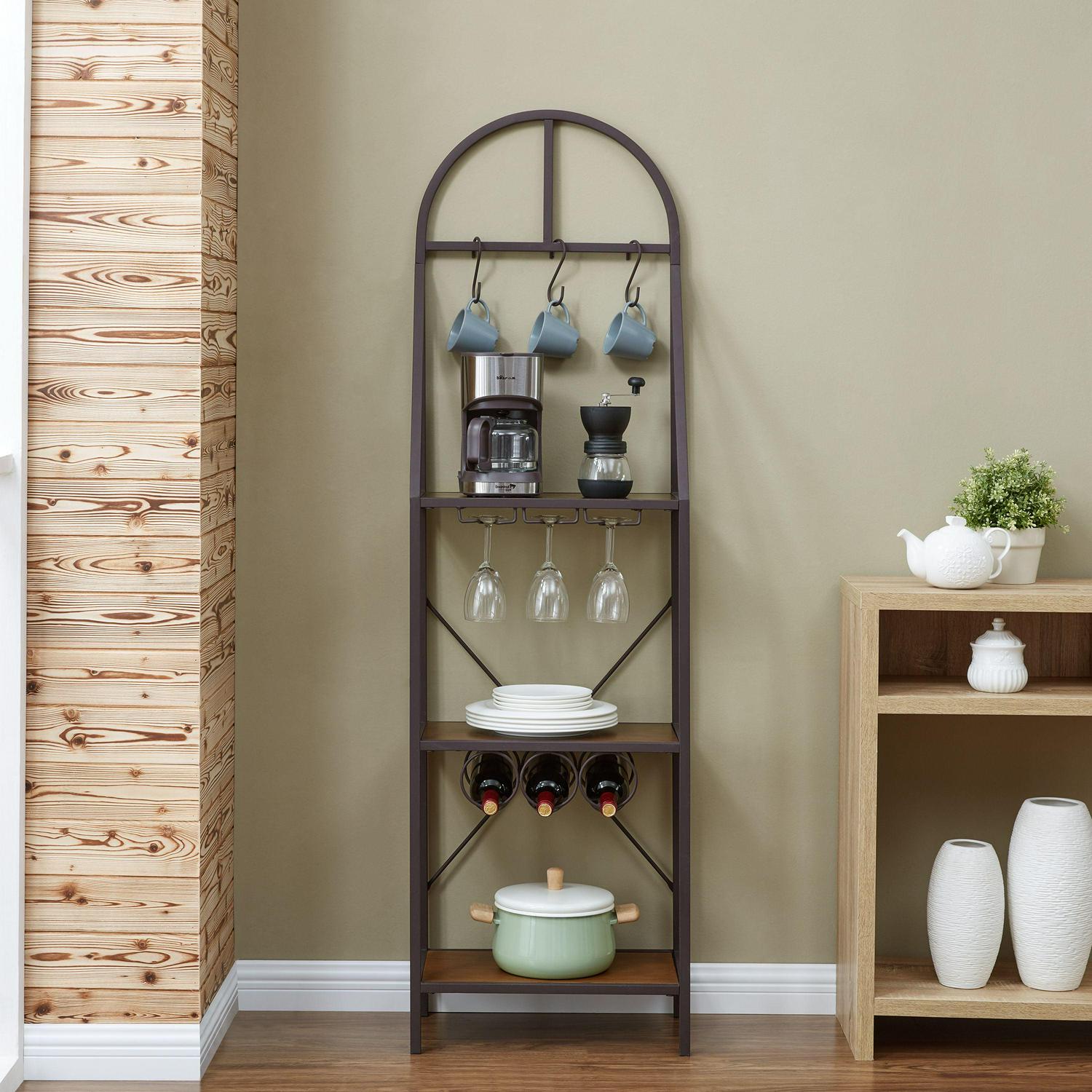 Southern Enterprises Pirricole Bakers Rack, Modern Farmhouse Style, Rustic Brown: A toast to you. This bakers rack holds wine glasses, bottles, and even a toaster! With a slender profile for smaller spaces, three dark pine shelves work for anything from dishware to consumables. Rustic brown metalwork makes the amenities of wine bottle and glass storage, and removable towel hooks, ideal for an open concept living space. Add this storage tower to your kitchen, for a touch of industrial style. Functional and stylish, this bakers rack holds all your kitchen entertainment needs.