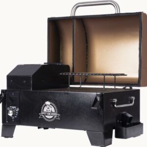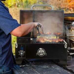 Take your outdoor adventure to the next level with Pit Boss Tabletop Portable Pellet Grill. The PB150PPG delivers unbeatable hardwood flavor in an easy-to-carry portable design. With more 256 square inches you can smoke fish on the go, sear up some steaks on your next camping trip, or grill a meal for two while tailgating. The Pit Boss Tabletop Pellet Grill features a 7LB hopper capacity, a dial-in digital control board, and a bossin temperature range of 180°F to 500°F. Thanks to a locking lid and convenient handles the Pit Boss Tabletop Pellet Grill is ready to grill and go wherever you are.