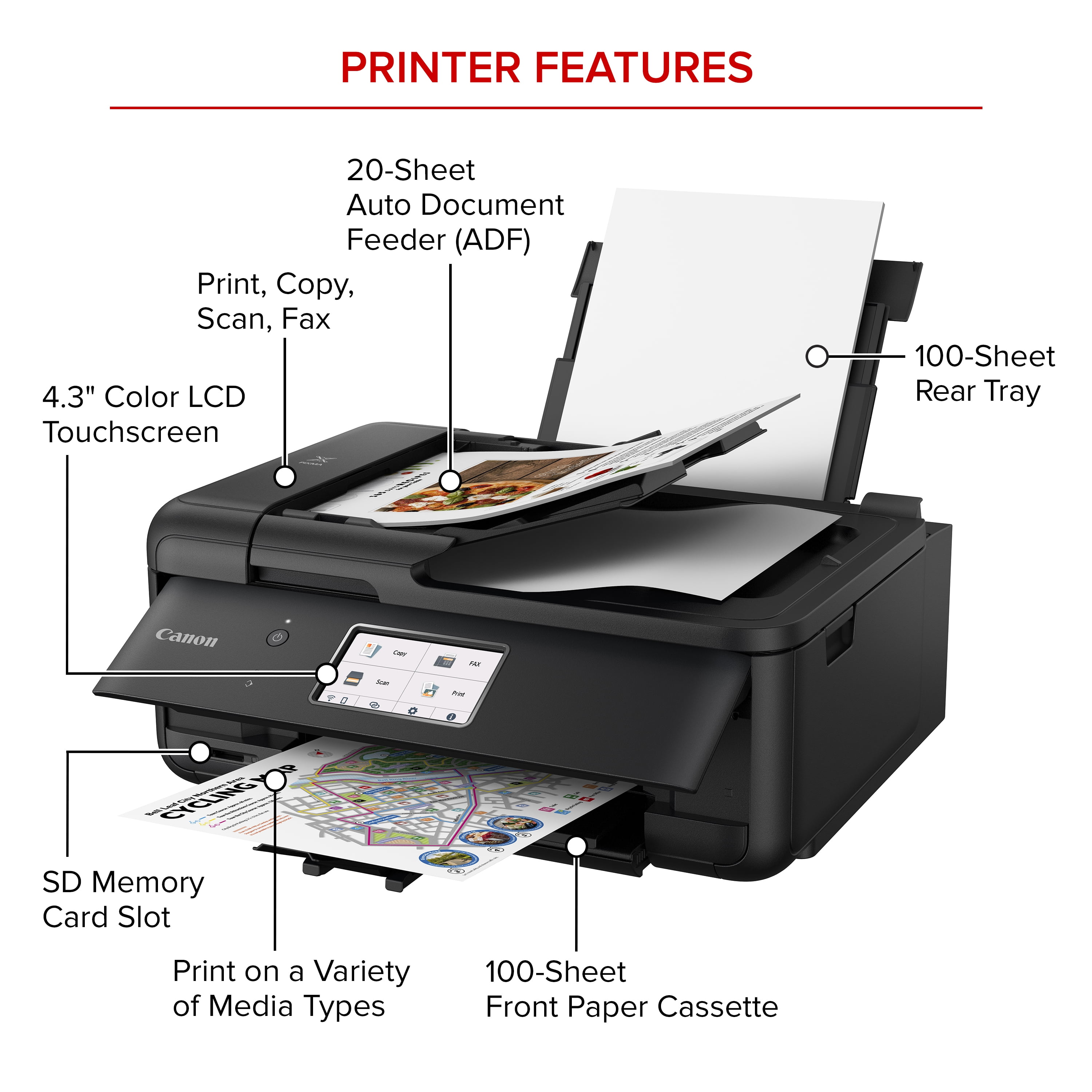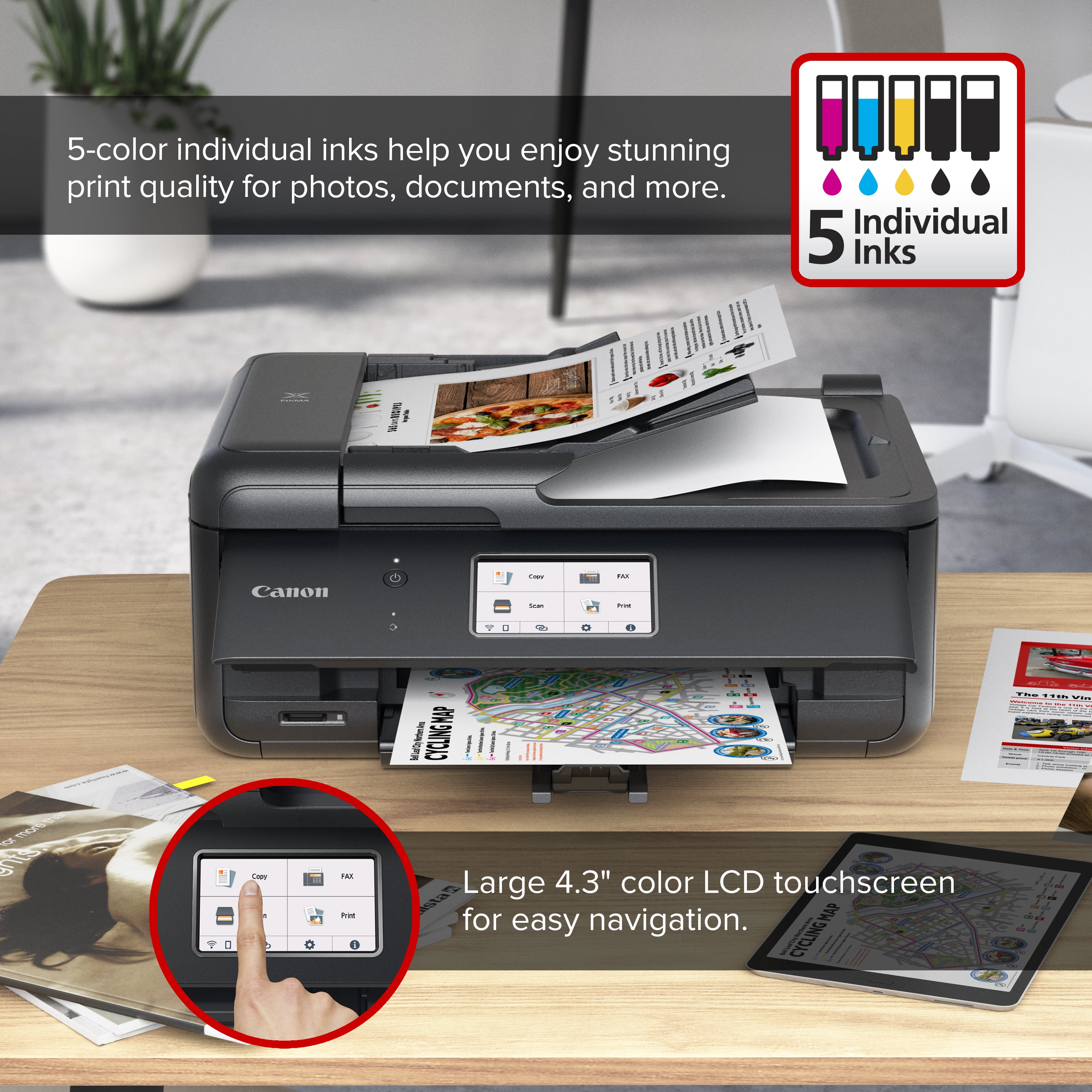 When you need a compact home office printer that can handle all your work needs, the PIXMA TR8620a has you covered. With front and rear paper feeding, a 5-Individual Ink System, 4.3″ LCD Touchscreen, and impressive wired and wireless connectivity options, youâll be able to do it all. The PIXMA TR8620a can easily transition from scanning a multi-page contract with the built-in Auto Document Feeder to printing double-sided homework assignments from online classrooms systems, or a family photo wirelessly from your smartphone. Whether it’s printing documents and reports, or faxing and scanning, the PIXMA TR8620a is the ultimate compact home office printer that’s big on performance and productivity.
