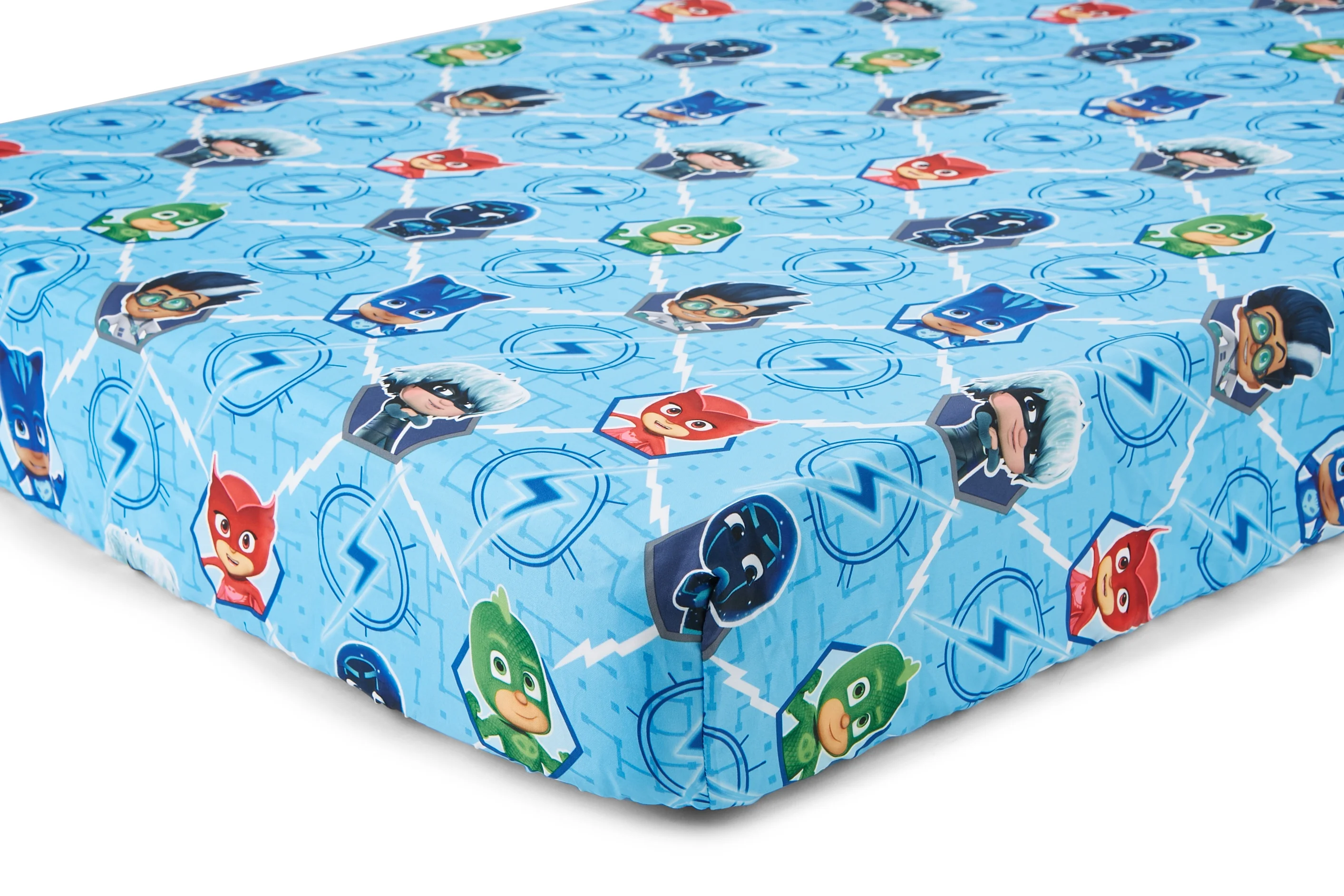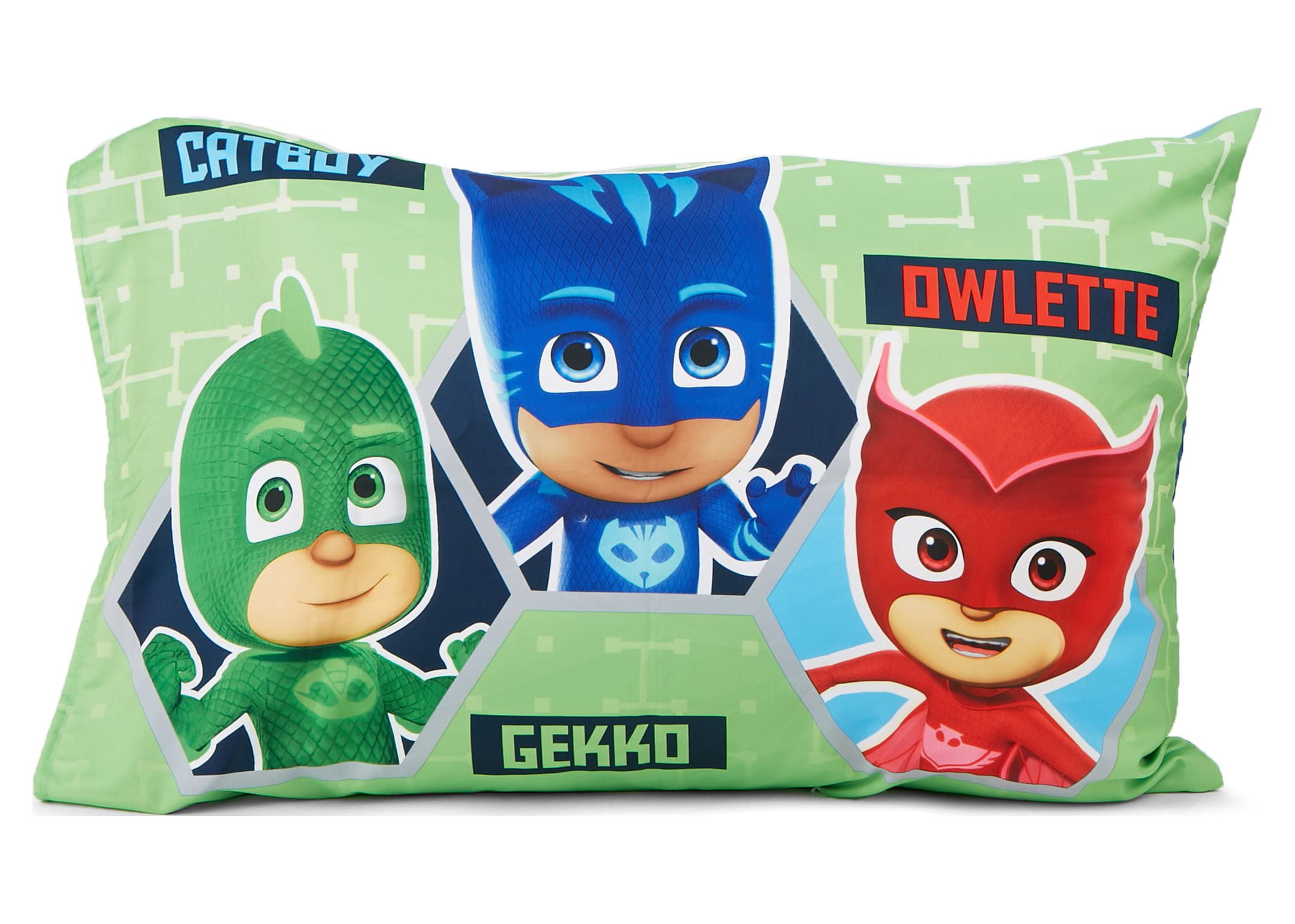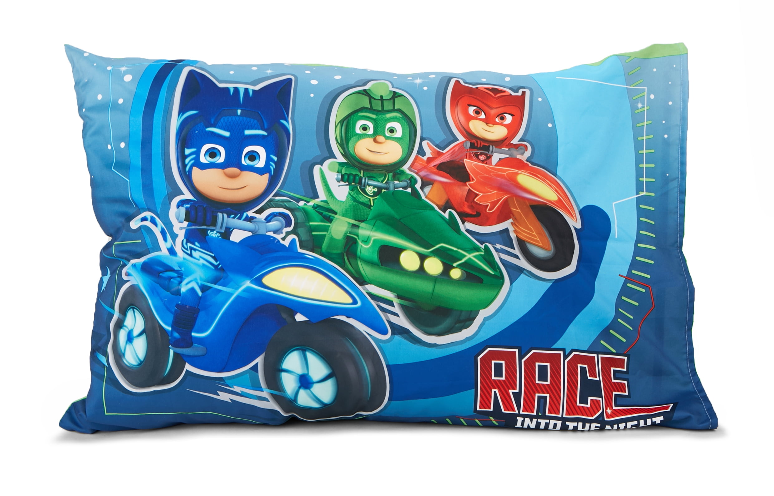 PJ Masks 4-piece toddler bed set, sure to excite your child Machine Washable 100% Polyester Microfiber Reversible Bedspread featuring your favorite PJ Masks Characters 58″ x 42″ Fitted Sheet with Allover character print 28″ x 52″ Allover Print Flat Sheet 60″ x 45″ 2 Side Print Pillow Case 20″ x 28