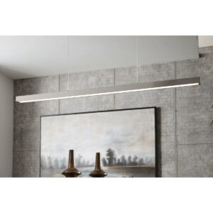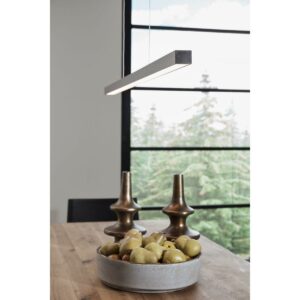 Provide a dramatic architectural lighting design to any space with this LED pendant. A smooth metal beam with a brushed nickel finish suspends from the ceiling to add clean visual interest to minimalist residential or commercial settings. The frame holds a polycarbonate shade in place to complete the design.