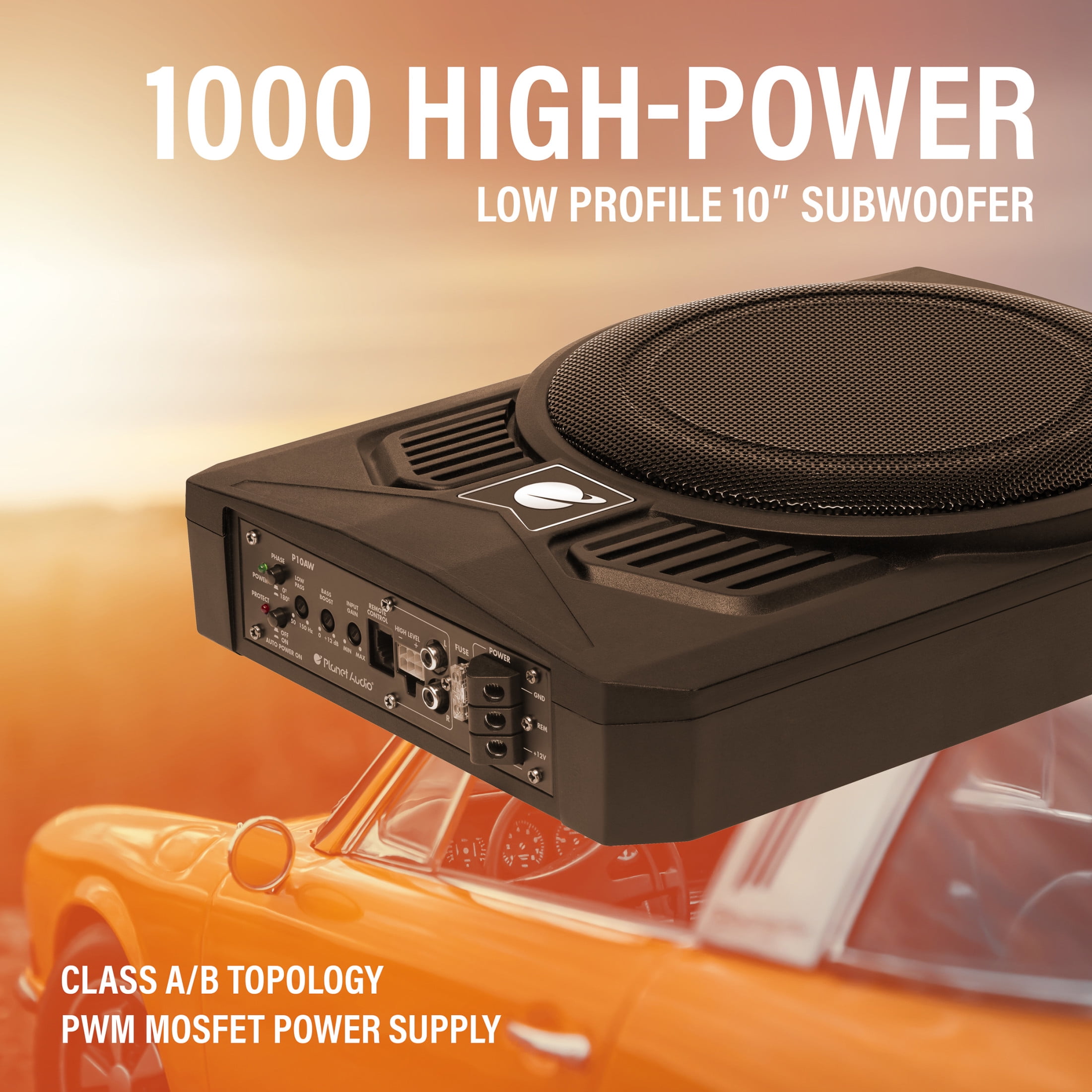 PWM MOSFET – Pulse Width Modulated design simplifies power supplies. It controls the output voltage and current precisely by removing the output current sensing loss & eliminating all secondary feedback circuitry. It’s efficient & reliable Variable Low-Pass Filter – A low-pass filter is an electronic circuit that removes all the notes below the filter’s frequency setting. You will use the Low-pass filter to primarily keep high notes out of your subwoofer(s) High Level Inputs – Speaker level inputs are commonly referred to as high-level inputs. It will be used to connect the P10AWK to your factory radio or an aftermarket radio that does not have low-level (RCA) inputs Low Level Inputs – Line level inputs, also known as RCA inputs or low-level inputs, use RCA interconnect cables to link the P10AWK with the source unit. Most aftermarket radios have multiple pairs of RCA outputs that can connect to multiple amplifiers Variable Bass Boost – Variable Bass Boost allows you to adjust the low bass within the boost range to just the way you like it Variable Gain Control – The gain control is not for adjusting volume. It simply adjusts the amount of signal that is coming from your receiver and going to your amplifier Specs – Dimensions: 13.58” x 10.43” x 3.15”, Weight: 10.53 lbs., Phase control, LED status indicator, Thermal, Short and Overload Protection Circuits, High Performance Voice Coil, Rubber Surround, Aluminum Cone, Remote Subwoofer Control Kit Includes – 17’ 8 Gauge Power Cable, 40 A Fuse Holder, 3’ 8 G Ground Cable, 16’ 18 G Remote Cable, 16’ RCA Interconnect, 4″ Wire Ties, Plastic Grommet, #10 Gold-Plated Ring Terminal, Butt Splice Wire Connectors, Tap Screw, Rubber Terminal Boot Warranty – Planet Audio provides a Powerful 3 Year Platinum Online Dealer Warranty so long as the purchase is made through Amazon.com. We strongly encourage professional installation of this product to ensure proper and safe functionality 10” woofer with 1000 Watt Max Built-in Amplifier 1000 Watts MAX 500 Watts RMS Power Handling
