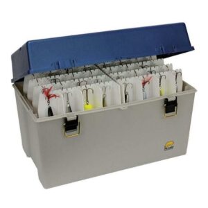 Keep your essential fishing gear organized and ready to go with the Plano Molding 791502 Big Game Tackle Box. Containing multiple racks with the Easy View divider system, it accommodates as many as 40 baits up to 12″ in length. A carrying handle offers convenient portability, while brass-bailed latches keep the lid tightly closed. You also have the option of removing the racks from the Plano tackle box and replacing them with utility boxes (available separately).