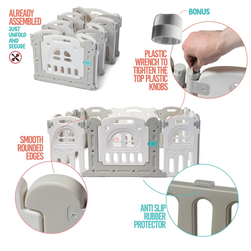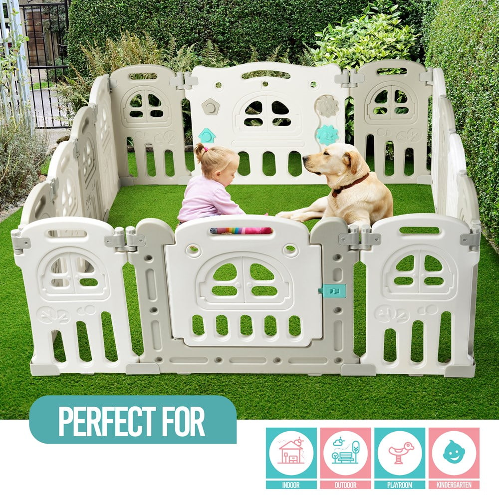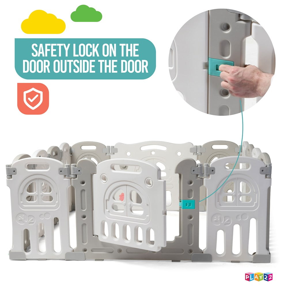 Freely Combined Into Various Shapes Play22 Children’s Fence Has A Total Of 14 Pieces, You Can Combine Multiple Or All Panels As Needed By Increasing Or Decreasing The Number Of Panels You Can Combine Them Into Squares, Rectangles, Hexagons Or Octagons To Create Different Sizes Of Game Space For Your Kids Larger Spacious The size 14 pieces panels is 60 x 60 x 24 inches, Covers over 25 square feet , Enough for 1-2 children to play in the safety activity Centre, It will keep your little one safe Hight Quality Baby Fence Panel Bottom Is Outfitted With Upgrade Rubberized Suction Cups That Play Yard Create A Sturdy Base Designed To Withstand Sliding And Baby Playpen Manipulation From Your Child Fun and Educational Has Been Shown As The Most Effective Way To Improve Your Childs Motor Skills And Cognition Development, While Its Activity Wall With Sensory Toys Fosters Your Little Ones Play Safety Material and Non-Slip Design Play22USA Baby Fences Are Made Of High Density Polyethylene Plastic And Will Not Harm Your Babys Health The Non-Slip Rubber Pad On The Bottom Of The Panel Makes It Difficult To Tip Over And Move, Play22USA Foldable Baby Playpen Meets All The Safety Requirements – BPA and NO LEAD Kids Babies Toddlers Boys Girls Unisex-children