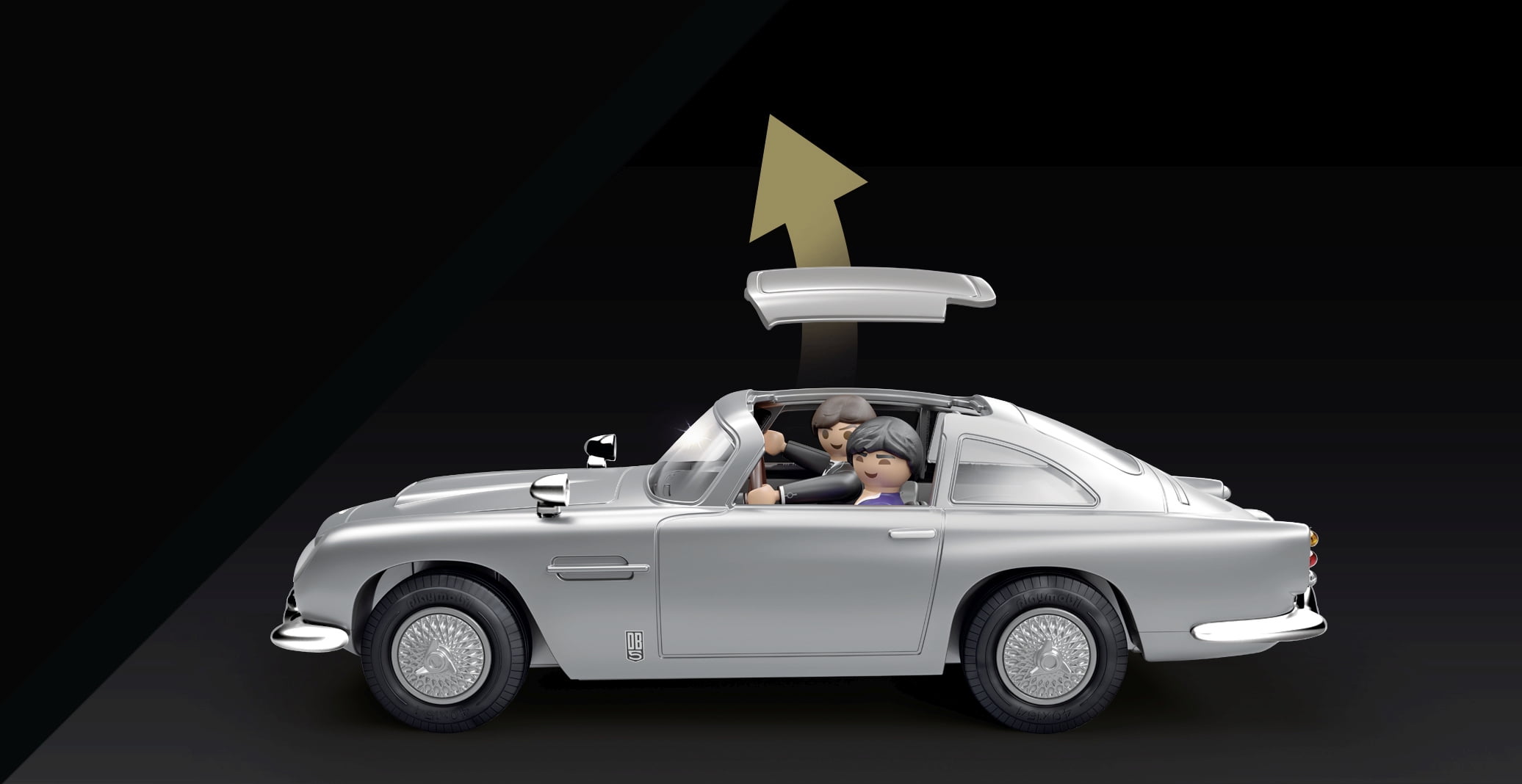 • Just like in the movies, this PLAYMOBIL model is equipped with many secret functions for a secret spy Watch out for the ejection seat on the left side passenger seat • Enemies beware! Don’t get too close to this iconic car, there are retractable tire cutters on all four tires. • Remove the roof for open play, with seating for a secret spy and friend, or two PLAYMOBIL figures