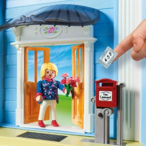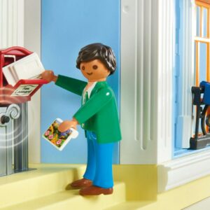 Welcome to your new home at the Playmobil Large Dollhouse. Climb the spiral staircase to reach the second floor with many spacious rooms, or to go up to the rooftop terrace where you can sit at the table and look at the city from above. Listen for the functioning doorbell to know when you have visitors. It could be a delivery of packages or even a fresh bouquet of flowers! Add your own personal touches to the home with the included removable stickers and window boxes. Set includes two figures, three-level home, mailbox, window boxes with flowers, and other accessories. Furnish your new home with the different add-on rooms (70206-70212 each sold separately). Requires 2 X AAA batteries. Dimensions: 26.7 x 14 x 24.5 in (LxWxH). Recommended for ages four and up. Warning. Choking Hazard. Small parts. Not for children under 3 years.