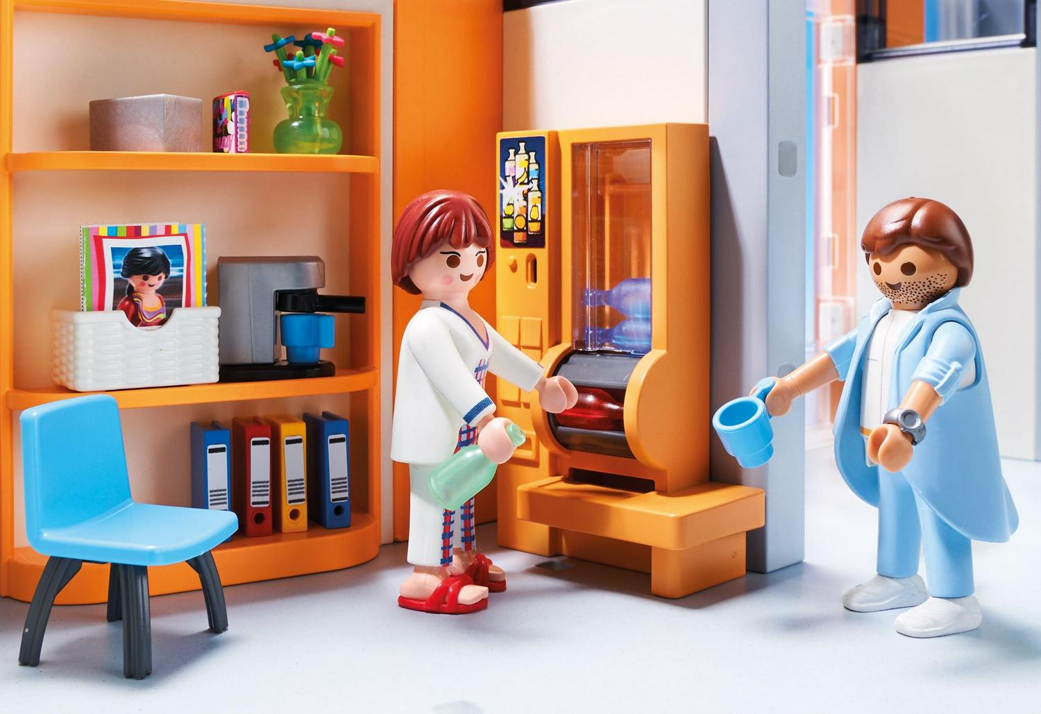 – Set includes four figures, hospital building, medical devices, rolling patient beds, furnishings for the patient room, medical charts, medical cart, IV pole, and many other accessories