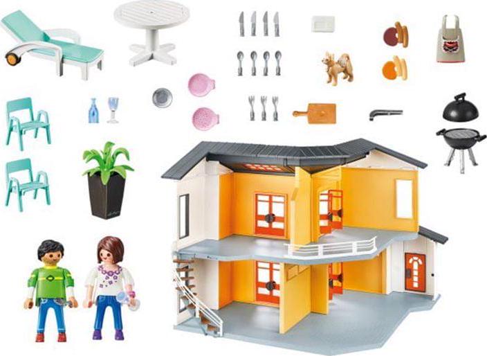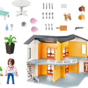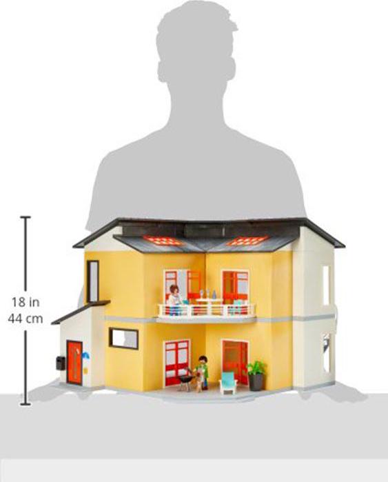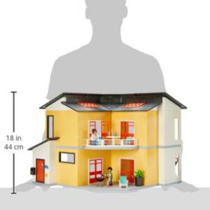 Move on in to the modern house. With five spacious rooms and a winding staircase, its the perfect place to call home. Spend some time grilling a BBQ outside on the patio or relax on your balcony. Working doorbell and overhead entry light make it easy for you to greet your guests. (2 x AA batteries required.) dont forget to check the mailbox each day for letters from friends and family. Decorate your space with the different add-on rooms (sets 9267-9272 – each sold separately.) set includes two figures, dog, grill with food, lounge chair, table and chairs, LECHUZA plant, utensils, and lots of other accessories. Recommended for ages four to ten.