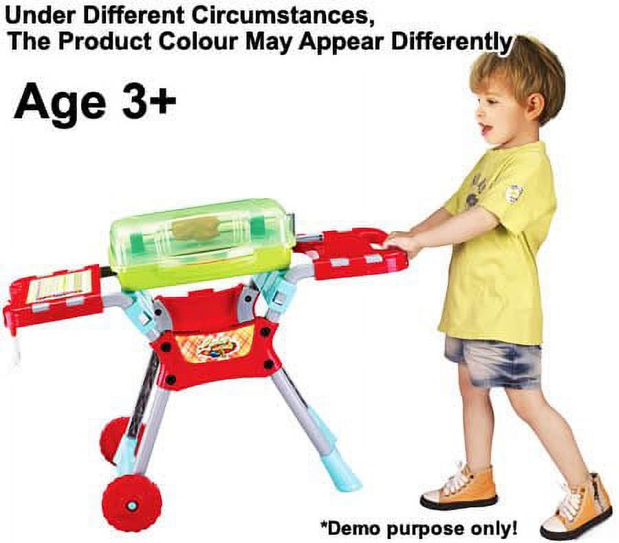 This fun barbecue play set includes everything to get the party started! Surprise your child with a fun Children’s Cooking Play Set. This pretend play set consists of the whole barbecue set up with the works. Boasting plenty of accessories such as pots, cutlery, food, utensils and more, this barbecue play set is great for role playing. Let your little one enjoy the pretend play and encourage their imagination to soar with this BBQ grill cooking play set! Brightly colored, your child will be ecstatic and will spend hours at this Children’s Barbecue Play Set. Complete with a rotisserie and grill plate, this set even has a lid so you can wheel it around on the 2 wheels like a real BBQ Grill. To make it more engaging, this set lights up and sizzles like a real barbecue. With plenty of things to cook and do, your child will love this cooking play set! There are two ways to cook: small food pieces over grill plate or roasting chicken on rotating rotisserie. This set features removable grill plate, light-up coals and grilling sounds. Just turn the knob and start grilling! Children’s BBQ Grill Cooking Play Set Lights up and Sizzles like a Real Barbecue Plenty of Accessories Including Food and Cooking Tools Portable on 2 Wheels Assembled Size: 29 x 12 x 27 Weight: 5 lbs The food items includes 1x Beef 1x Green Pepper 1x Sausage 1x Onion 1x Mushroom 1x Salt Bottle 1x Pepper Bottle 1x Ketchup Bottle 2x Plates 2x Tongs 1xspoon 1xFork 1x Knife Requires 3AA batteries (not included). For ages 3 and up.