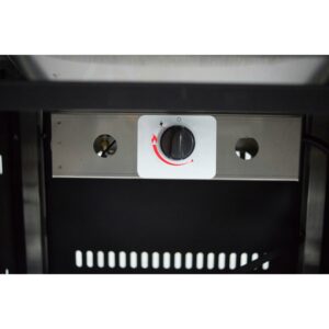 – Hinged doors access the propane tank and igniter