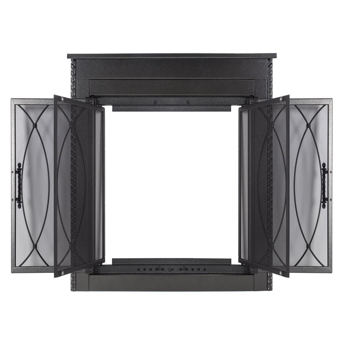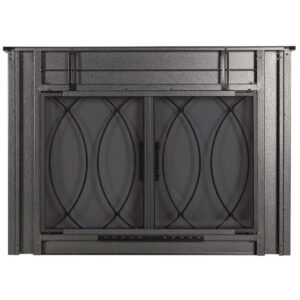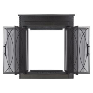 Boasting an old world aesthetic, the Pleasant Hearth Amhearst Fireplace Glass Door Collection is a beautiful, hammered black, cabinet style, one-piece frame. When installed, the fireplace glass door enhances the appearance of your family s indoor, wood-burning, traditional masonry fireplace hearth. All Pleasant Hearth Fireplace Glass Door sets are designed for masonry fireplaces only and are not compatible with prefabricated fireplaces see our sizing guide for more details: (link to the FGD sizing guide on our site/reference its location for retailers) When it s time to unwind from the day, this glass door set opens completely, providing a clear view of your burning fire. The smoked 3/16-in tempered glass doors must stay open while the fire is burning, and the built-in mesh firescreen panels act as a barrier to help contain embers. Both the glass doors and mesh panels have easy-catch magnets to help keep them closed. The glass doors can help you save energy year-round when closed, they prevent AC and heat loss through the chimney by up to 90%. The hidden damper knob at the bottom of the firescreen provides additional air flow to feed the fire for bigger, longer-lasting flames. Closed fireplace glass door sets also prevent cold chimney downdrafts from entering your home and keep pets and children out of fireplace soot. These fireplace glass doors are surface mounted flat against the fire place opening, allowing the doors to open fully to provide an incredible view of your fire from anywhere in the room. Pleasant Hearth has guided instructions on how to install your new fireplace glass doors in both the Product Manual (link product manual to the product manual) and Installation Video (link installation video to the installation video).