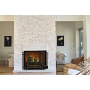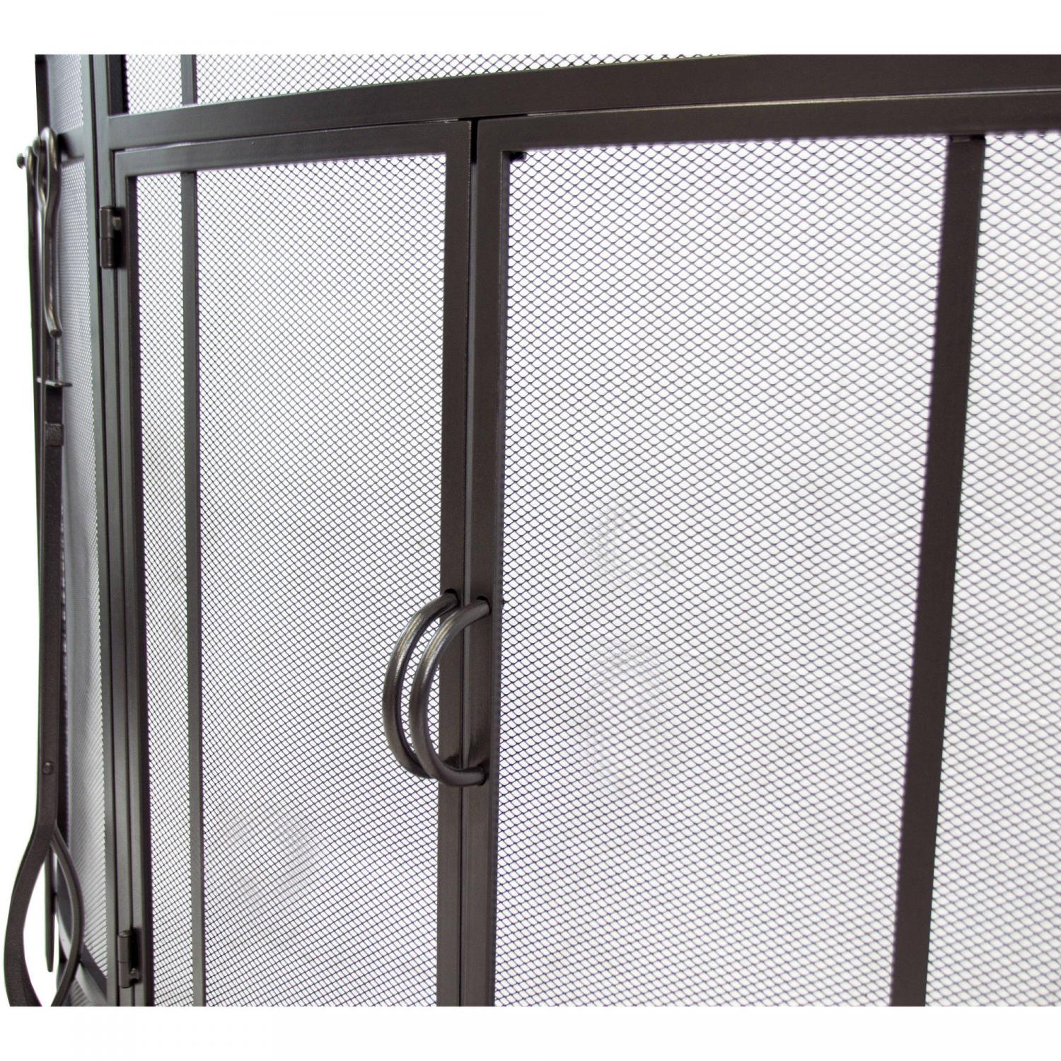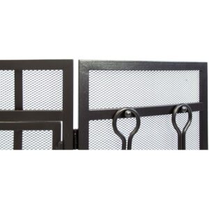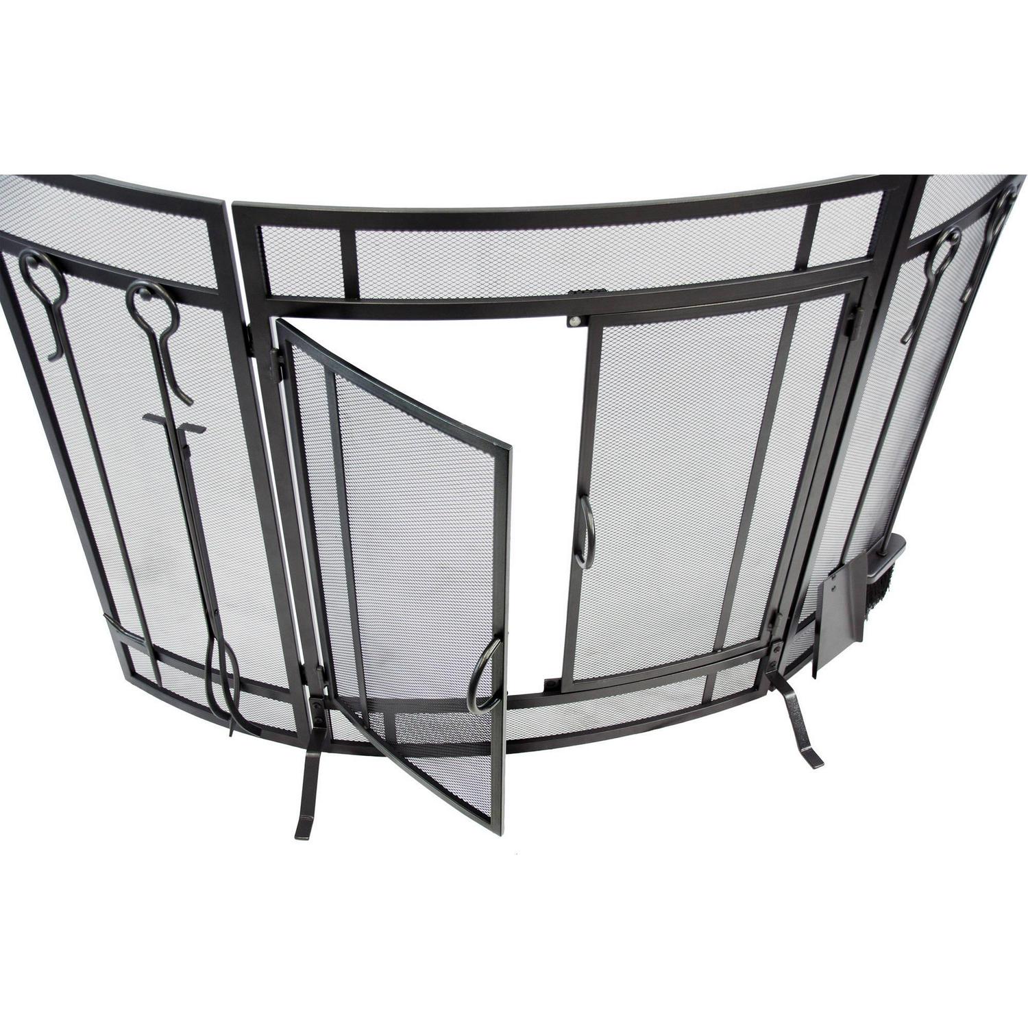 Keep it all together with the Pleasant Hearth fireplace screen and tool set combo. Its classic details evoke an arts and crafts feel that will appeal to anyone with traditional, transitional or classic tastes. More than just an accent in your home, the wide, curved screen has a unique display that curves around your fireplace, making it appear almost as a single panel. It reduces the amount of escaping sparks, helping to protect you, your home and your furniture. The poker, tongs, all-natural tampico brush and shovel conveniently hang from the screen for optimal reach when tending the fire.