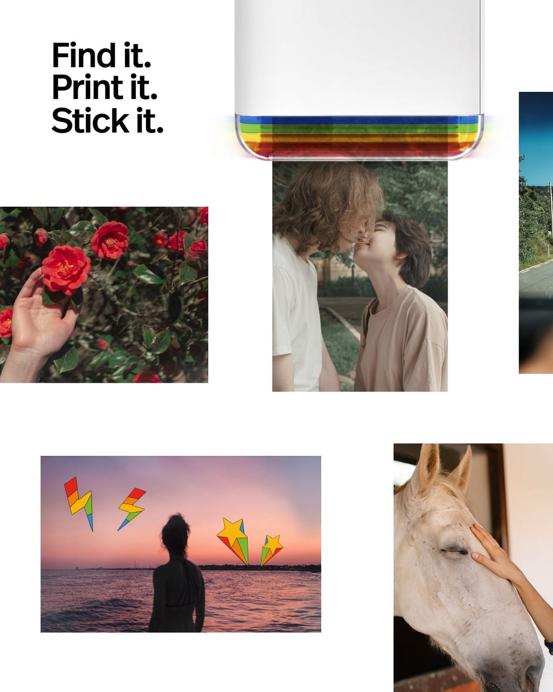 Snap it, print it, peel it, stick it: it’s that easy with Polaroid Hi-Print 2×3 printer. A Bluetooth® pocket photo printer that turns your phone’s shots into high-quality prints that you can peel and stick on whatever (and whoever) you like. It’s the pocket printer your imagination needs. Includes 2x Polaroid Hi·Print 2×3 Paper Cartridges (40 ready-to-print photo sheets). Please note: Polaroid is getting a rebrand! You may receive this product with different branding than shown in the images but the product has not changed. Features Bluetooth connection and rechargeable battery USB charging cable included. Compatible with iPhone 6s and newer. Compatible with most Android™ phones. 2 packs of Hi-Print 2×3 Paper Cartridge is included (40 sheets total). Seriously good printing