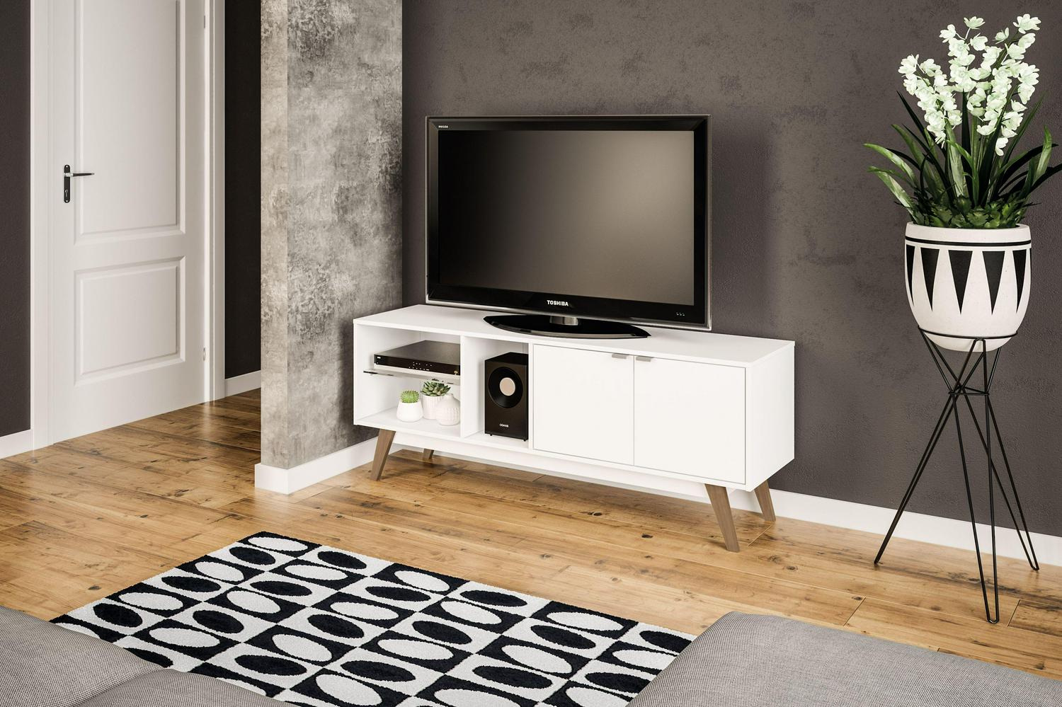 Polifurniture Bariloche TV Stand for TVs up to 65 inches, White Finish