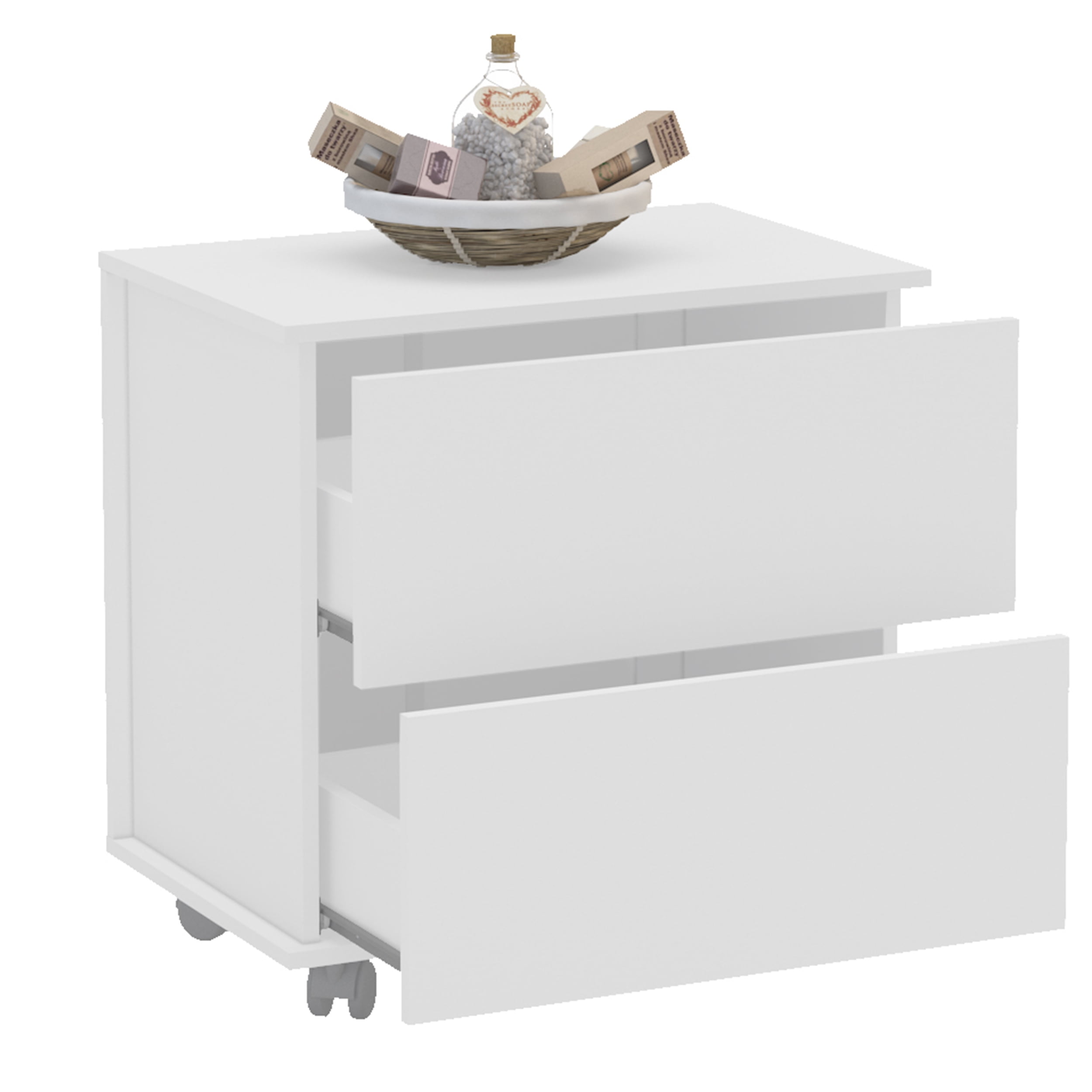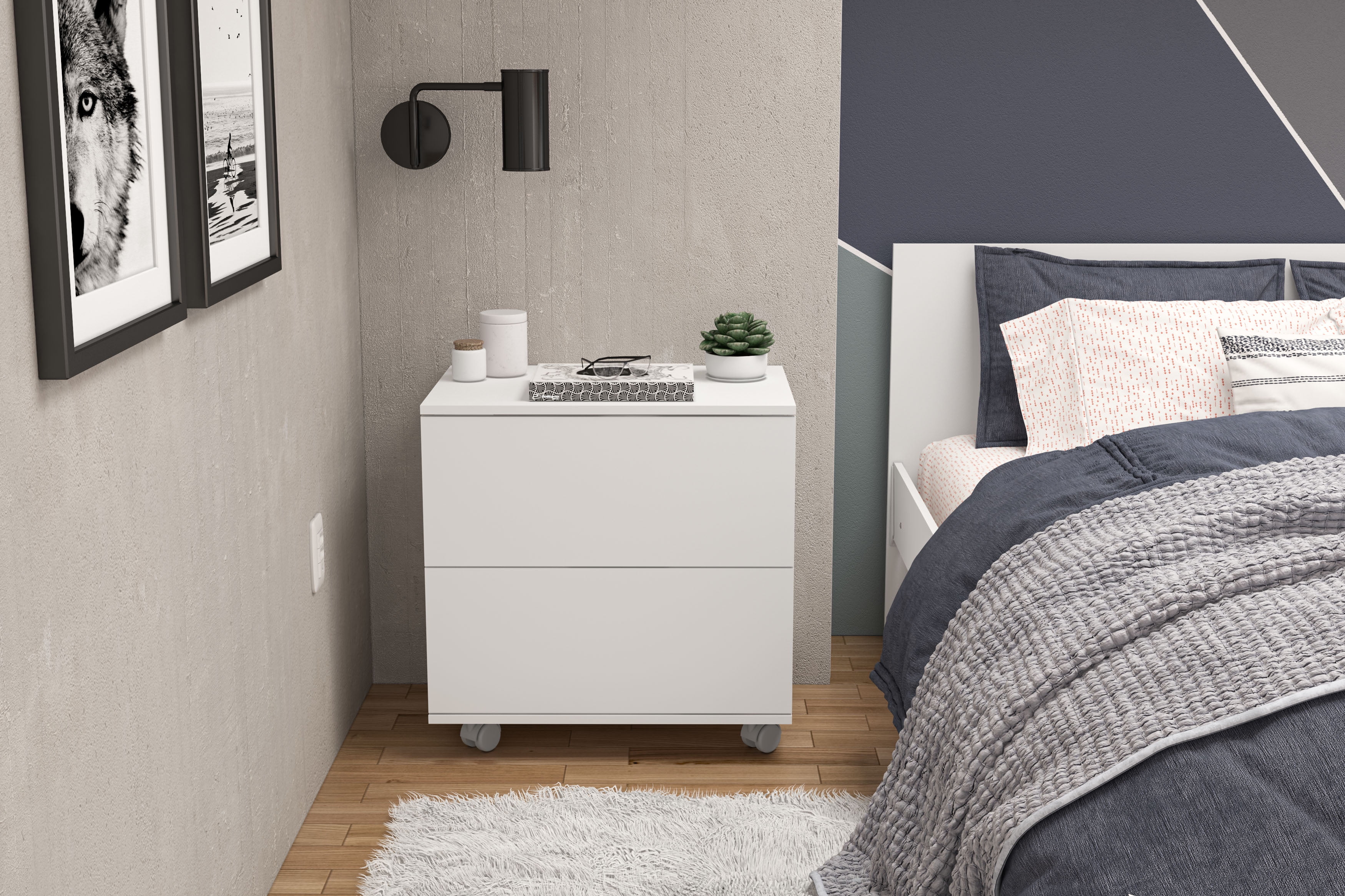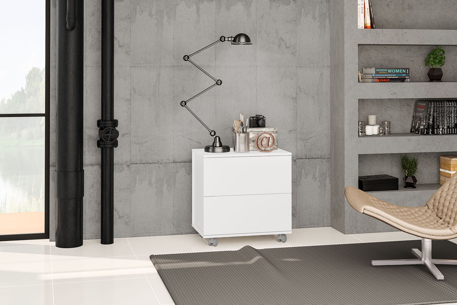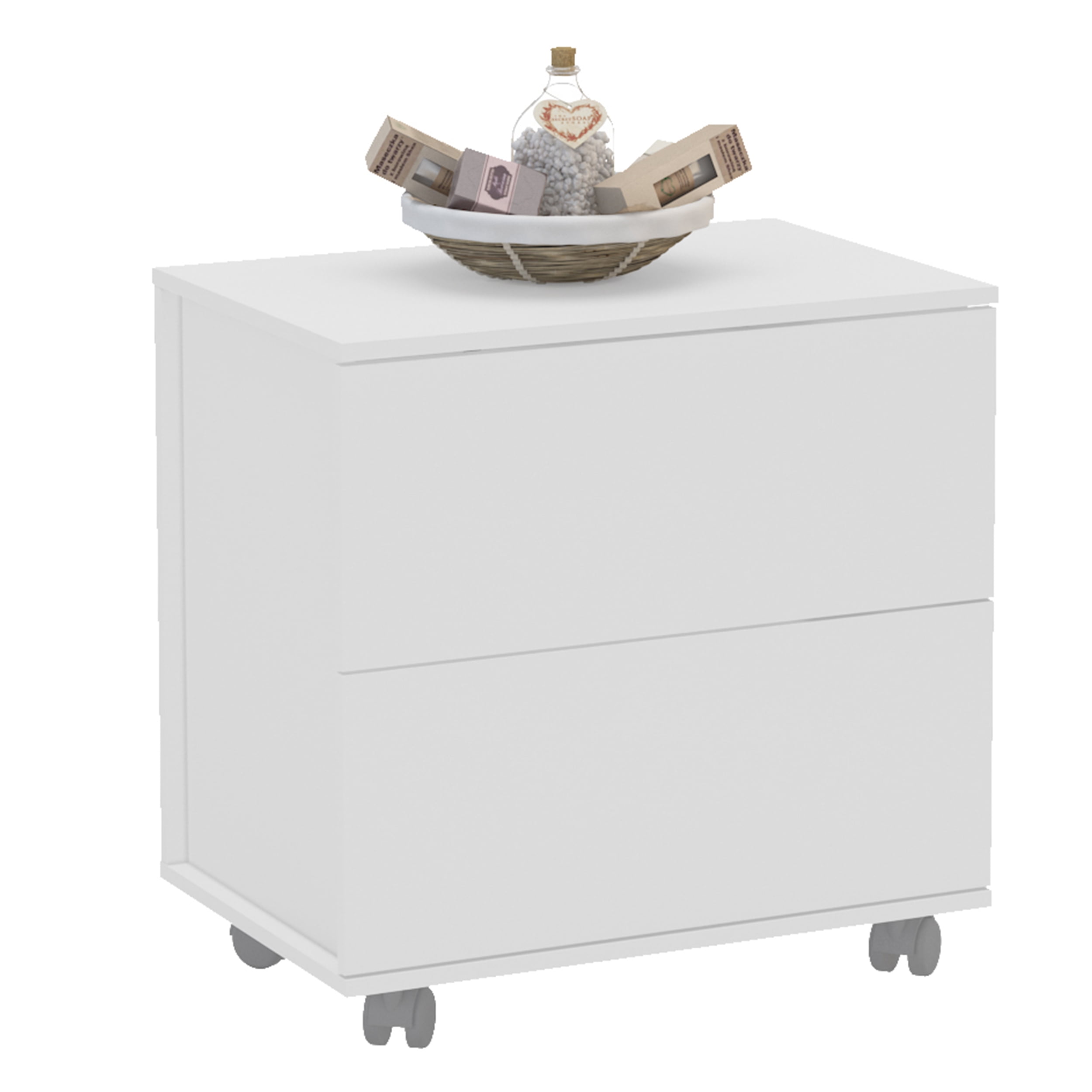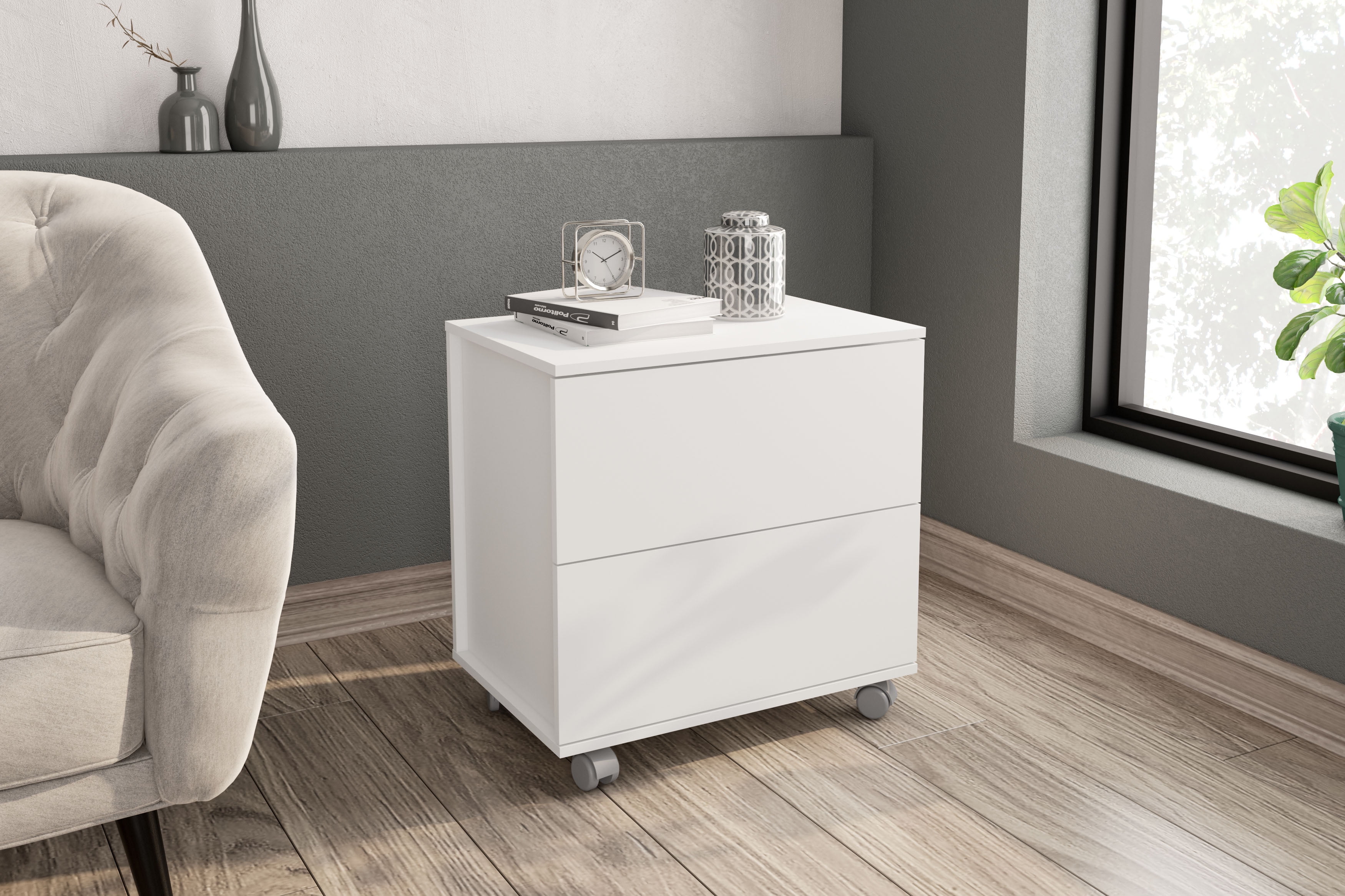 The Damasco 2 Drawer Mobile Storage Cabinet is an ideal for your organizational needs. This cabinet has a white finish that will fit perfectly with most home decor. It has a compact design and is great for anyone who is looking to add a little extra storage space. It is a great combination for any desk and its neutral finish will fit easily with any decor. The two drawers offer concealed storage and 4 casters provide easy mobility.