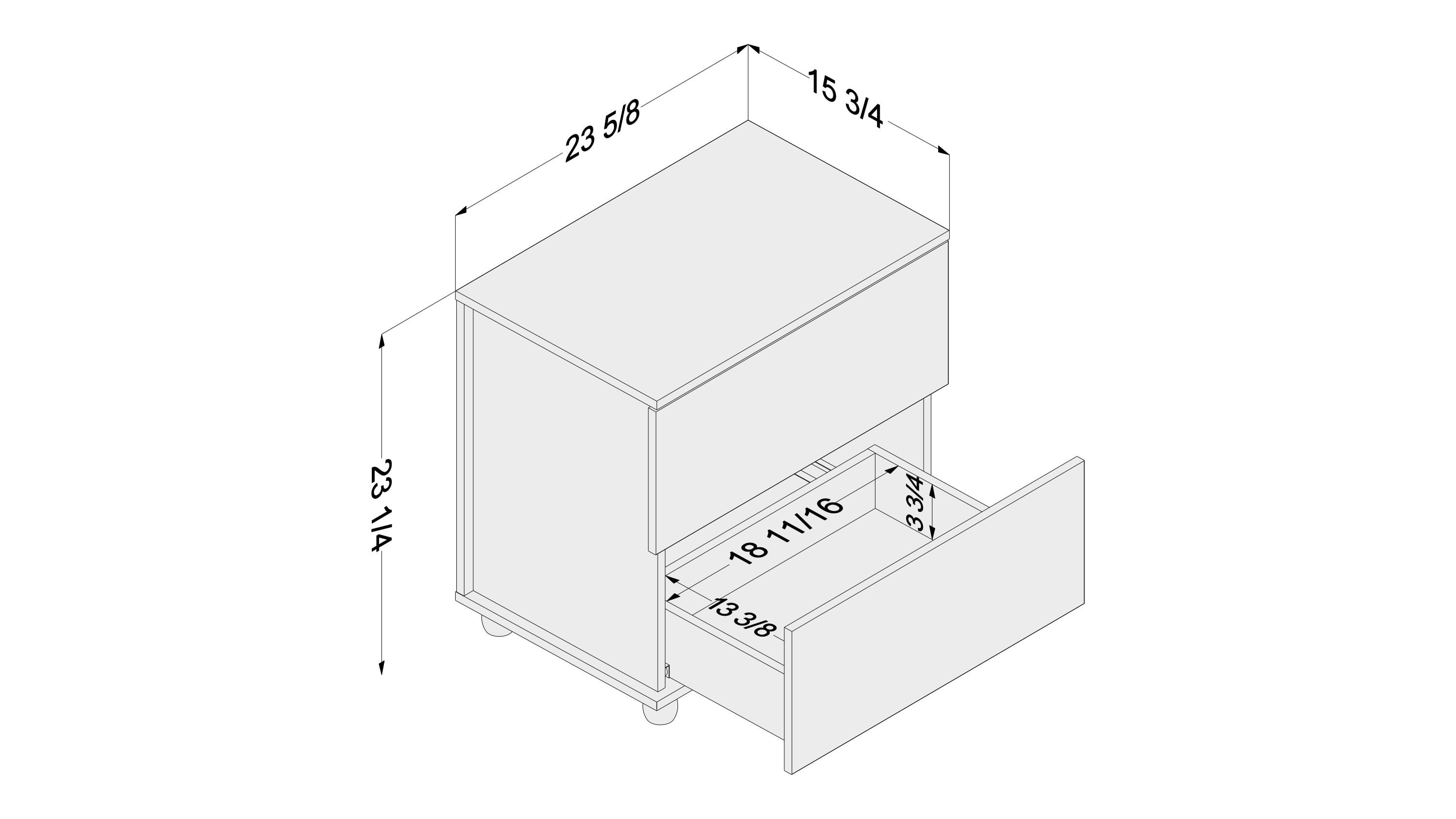 Melamine finish is scratch, stain and water resistant Constructed from engineered wood 2 drawers on metal glides Smooth rolling casters for mobility Multifunctional & versatile design allows this cabinet to be used in mulitple setttings in your home Matches perfeclty with Polifurniture desks Assembly required; instructions provided Assembled dimensions: : 23.25 in W x 15.75 in D x 23.75 in H